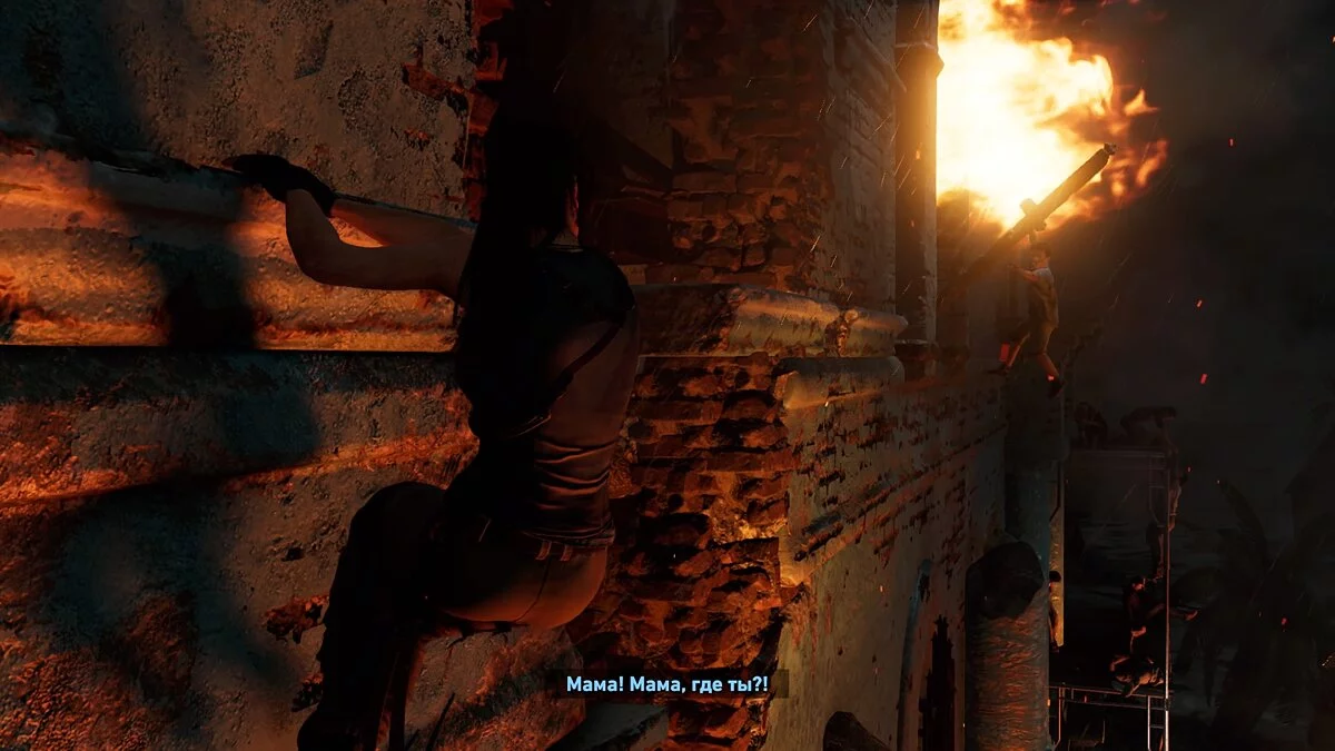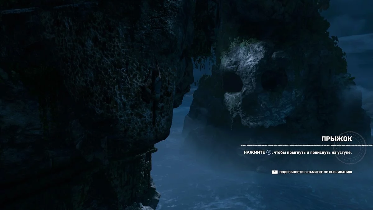 После вступительной кат-сцены Лара выбирается из-под завала. Для этого нажимаем указанную кнопку.
