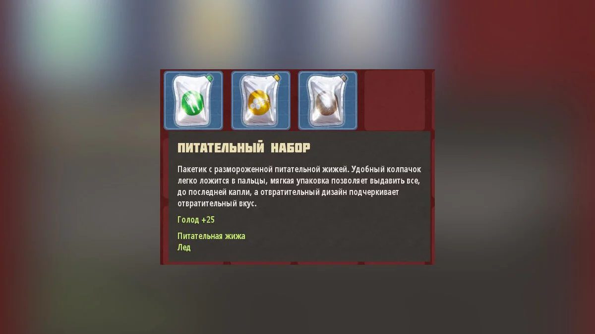 Для получения Питательного набора нужна Питательная жижа, ее можно найти в космосе. Она находится снаружи у челнока главного героя. Еще питательные наборы можно обнаружить к востоку от челнока. Они находятся в контейнерах на обломках корабля.
