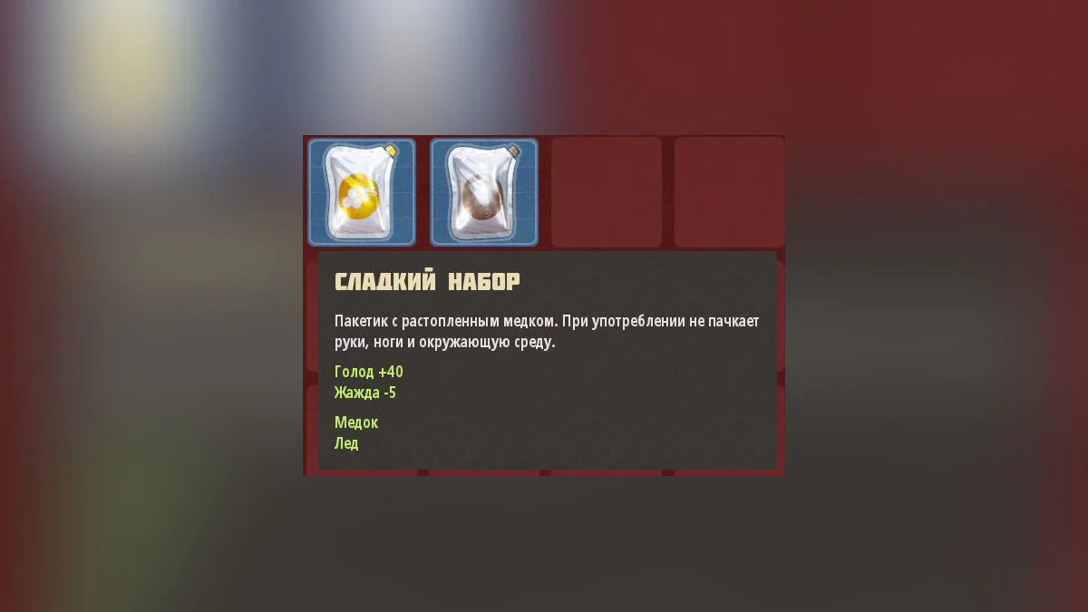 Для получения Сладкого набора необходим медок. Бочка с медом находится слева от челнока, по пути к манекенам.