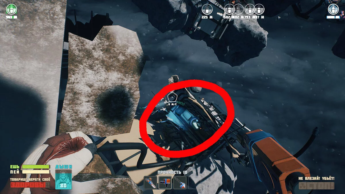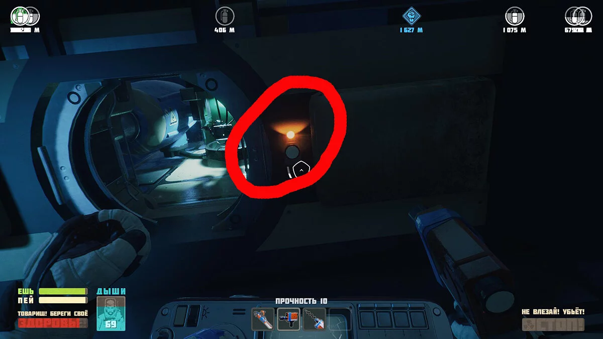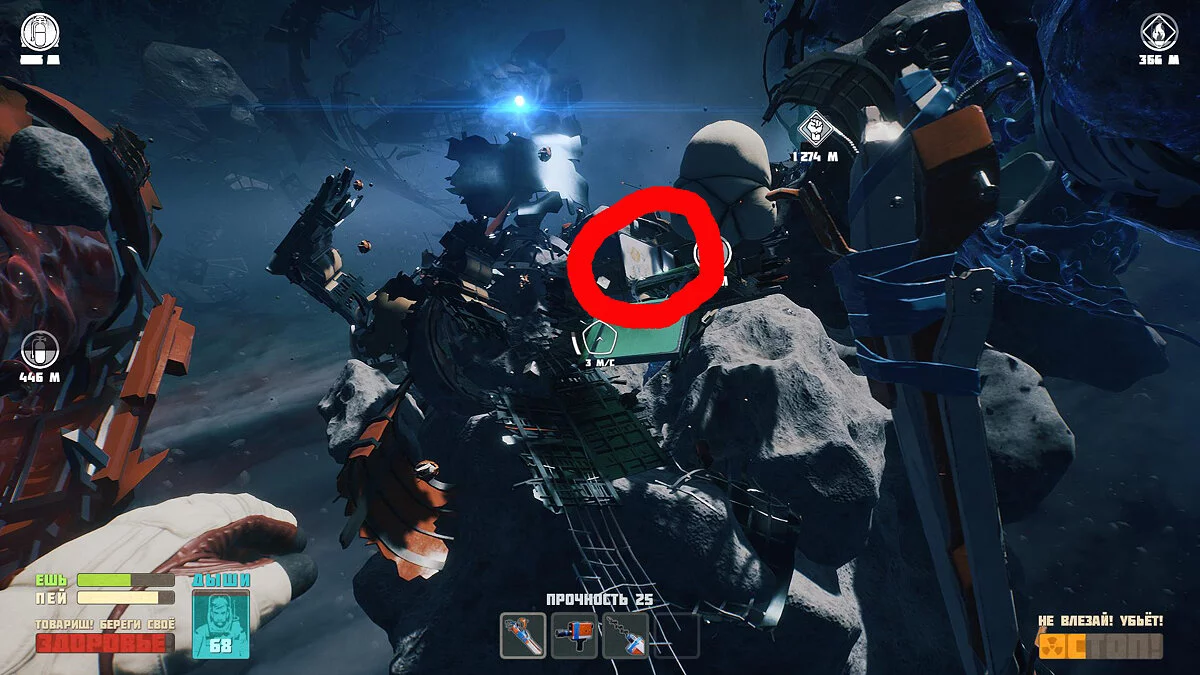 Чтобы получить схему Лома сперва разбиваем Интерфон. Отправляемся ремонтировать Антенну. Летим к Штурвалу и получаем схему Криптографической станции отладки. Делаем ее и ставим на быстрый слот. Используем, когда починим Интерфон. В Комбайне получаем схему лома.