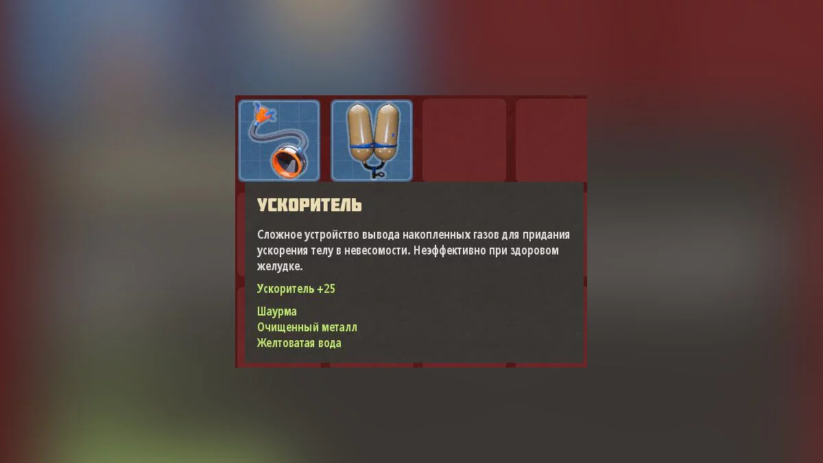 Ускоритель можно получить, подняв Шаурму около почтового челнока, расположенного за главным челноком.
