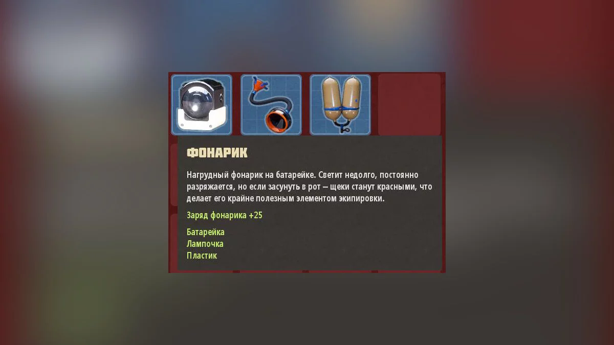 Схему фонарика можно найти впереди от челнока. Находим обломки корабля, а там спасателя. У него и получаем Фонарик. Трогаем Фонарик и получите схему.
