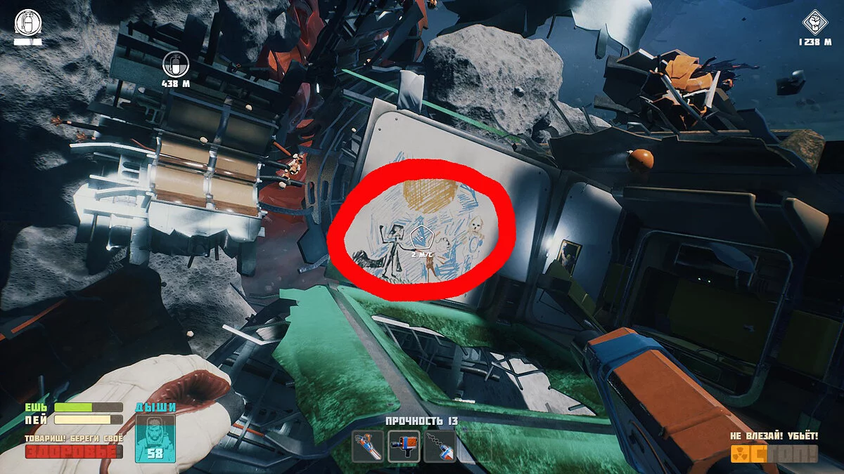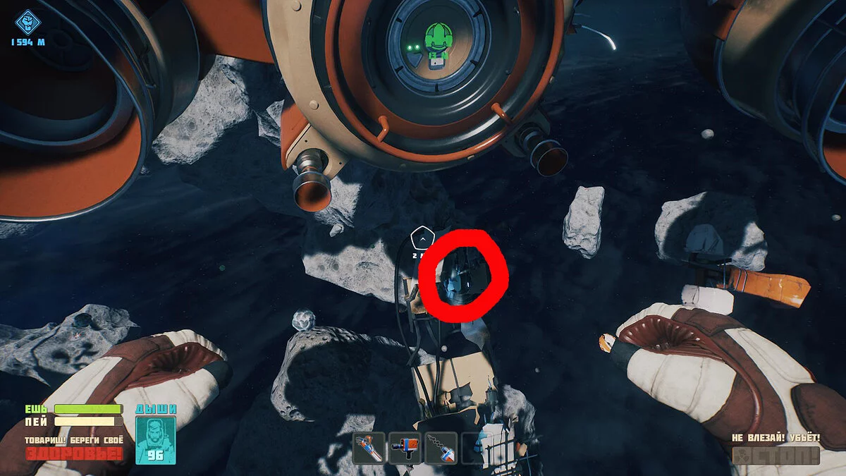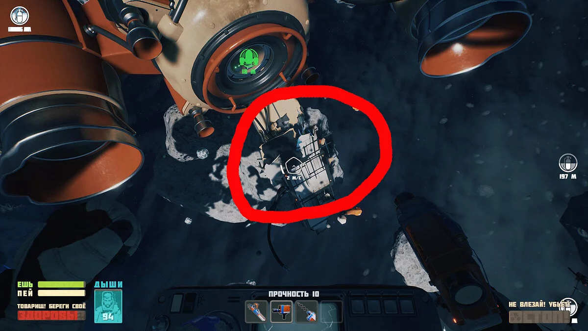 Двойной кислородный шарик можно получить, просканировав рисунок на другом челноке. Он расположен прямо и внизу от главного челнока.