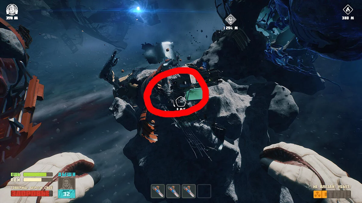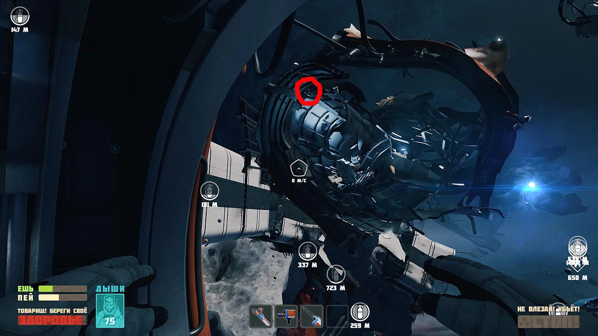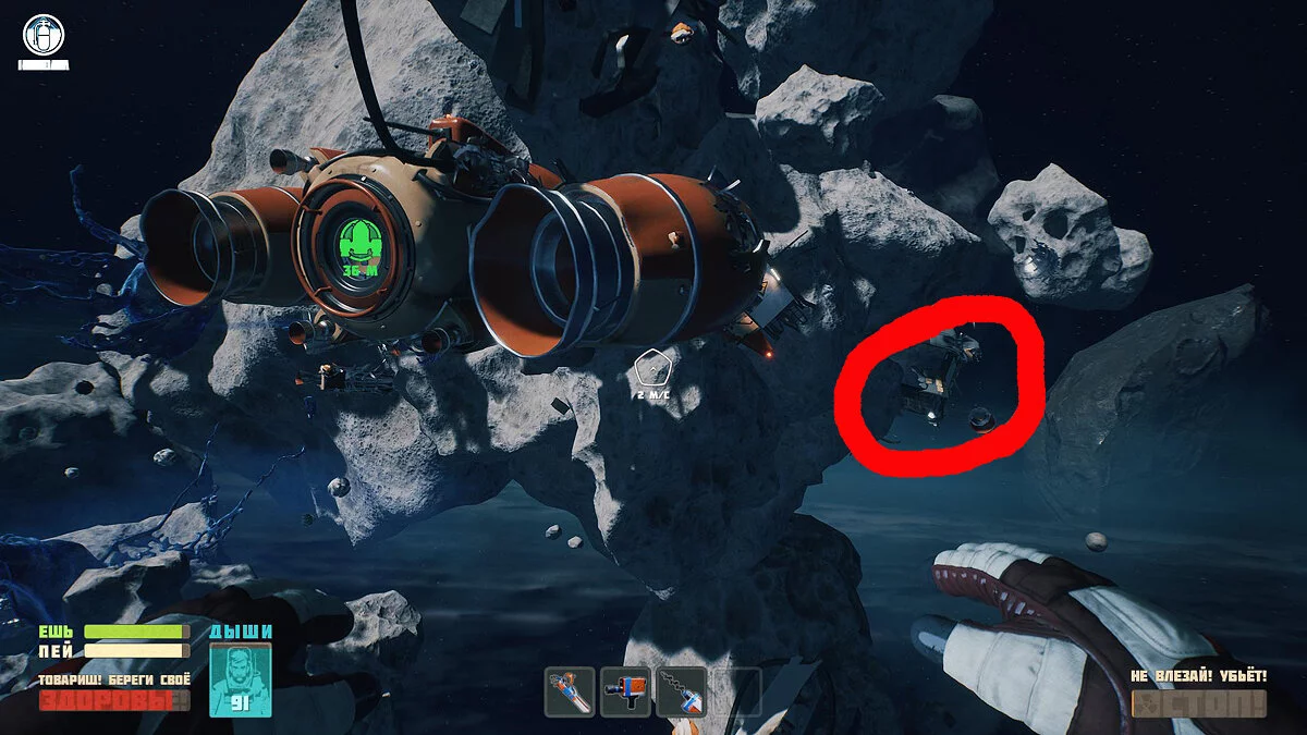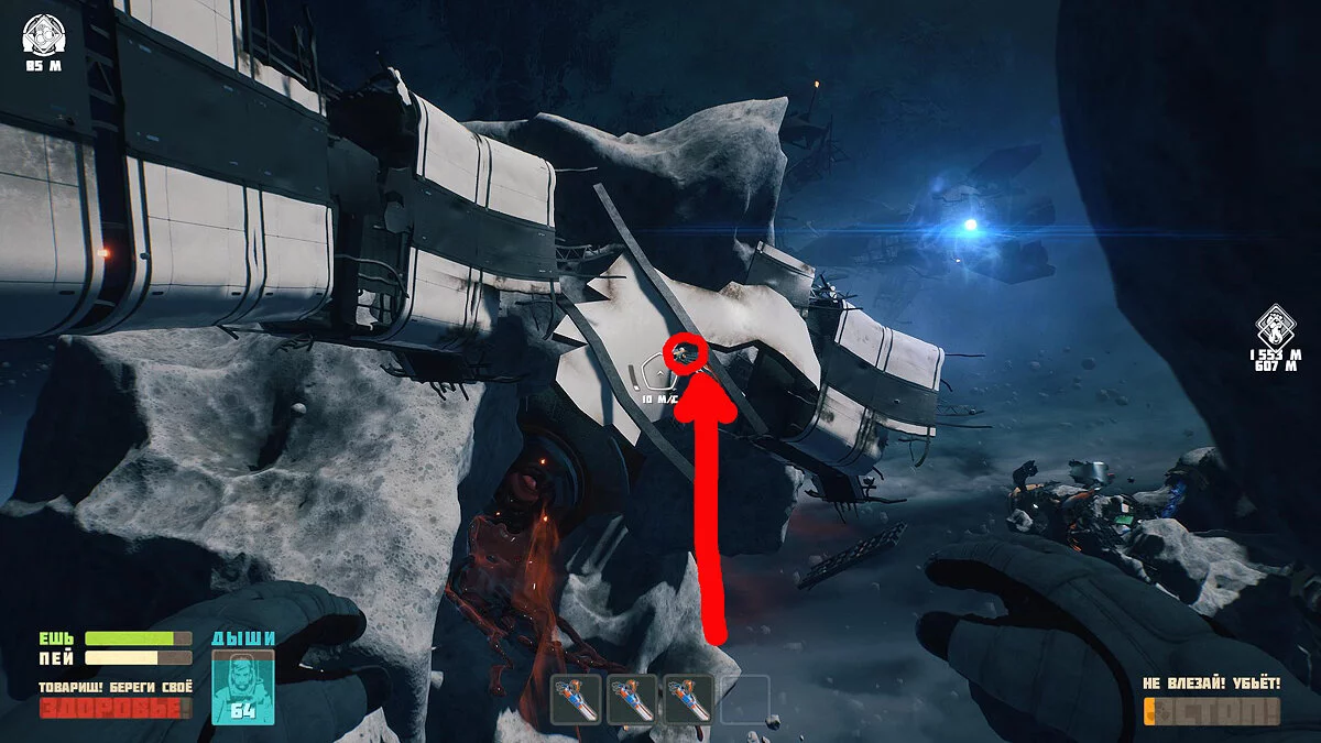 Ножницы можно найти в одном из контейнеров, расположенных около челнока.