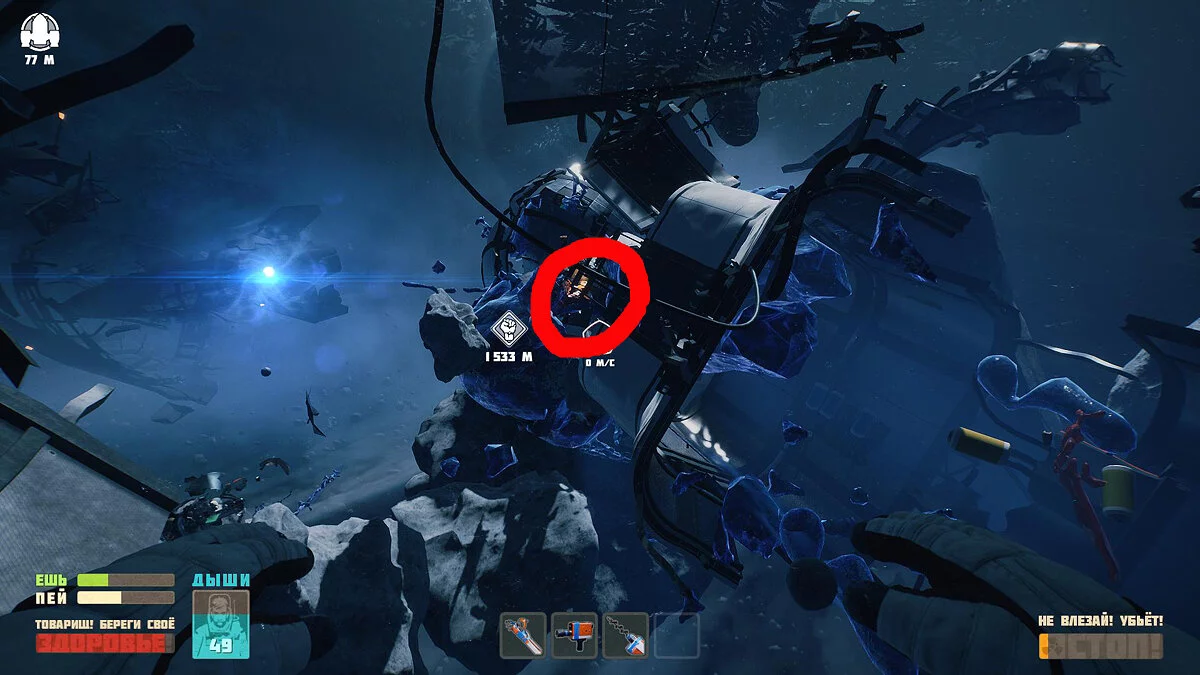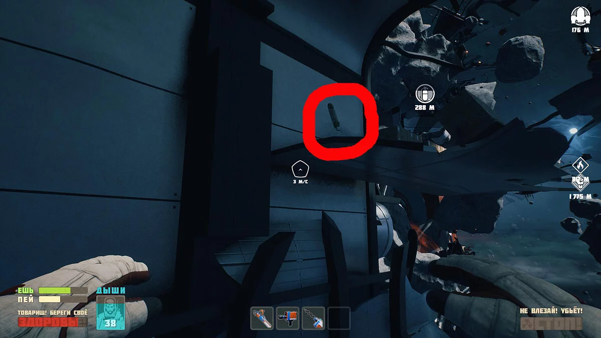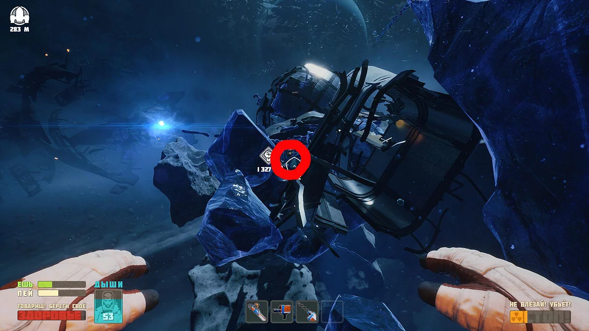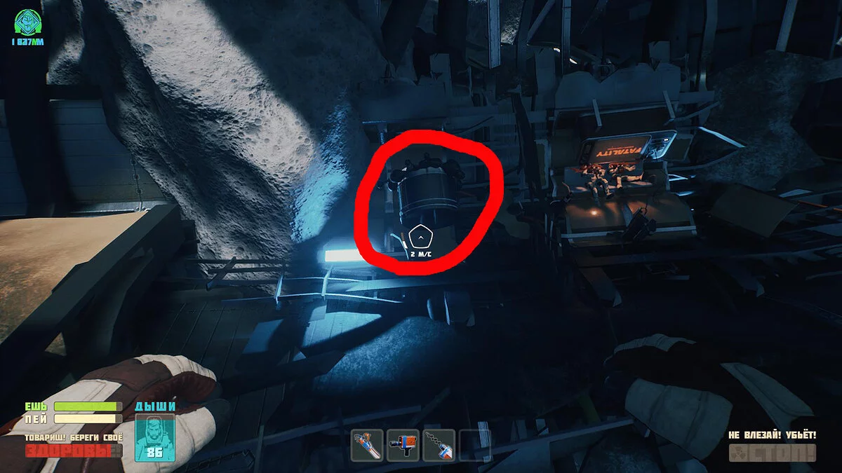 Ножницы можно найти в одном из контейнеров, расположенных около челнока.
