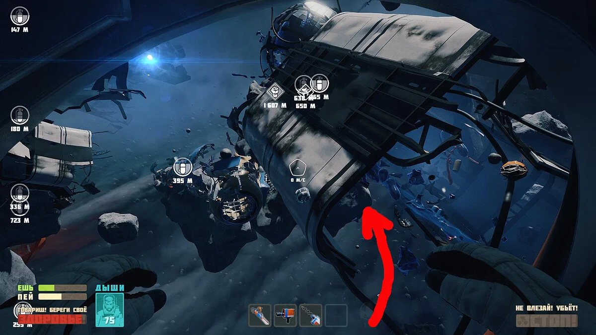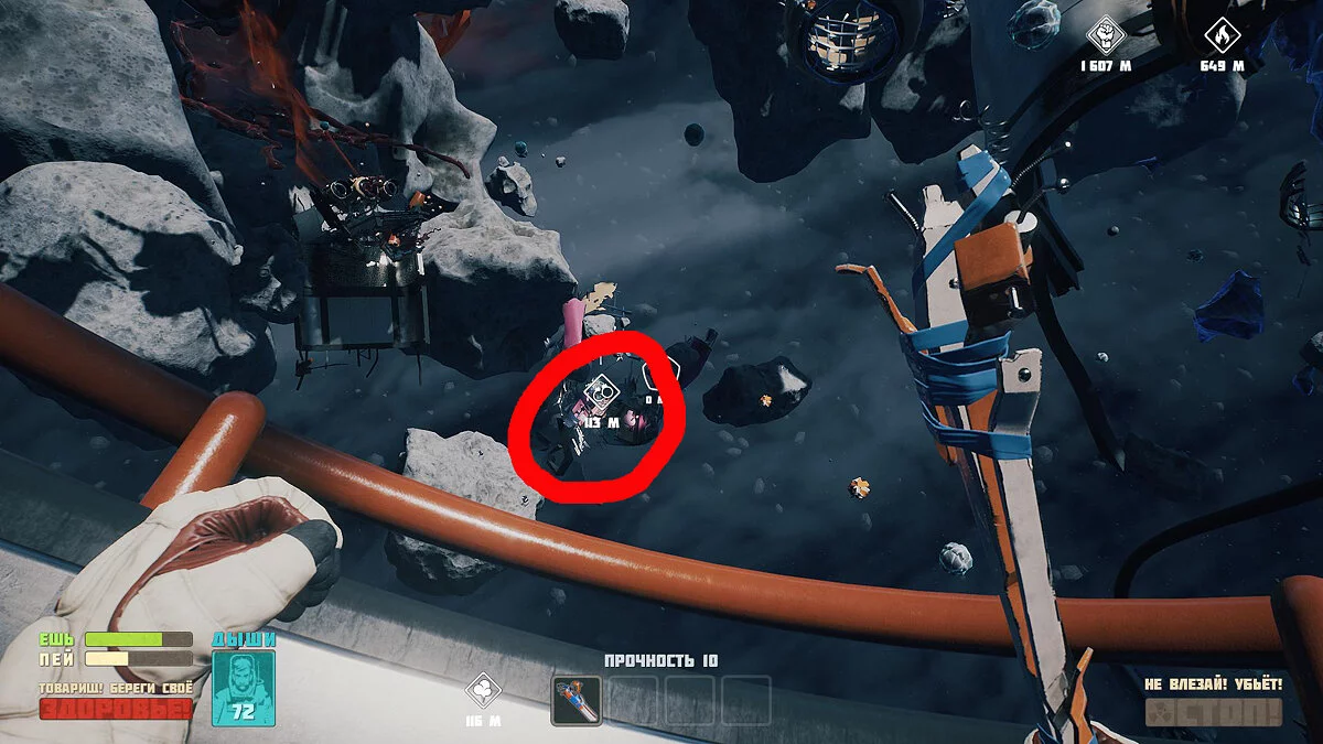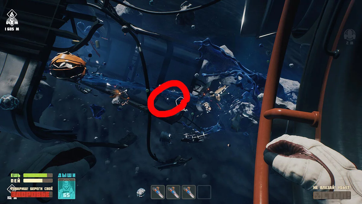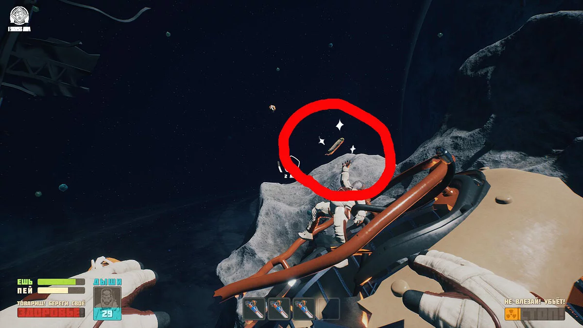 Презервативы можно найти, разбив контейнеры, летающие вокруг главного челнока.