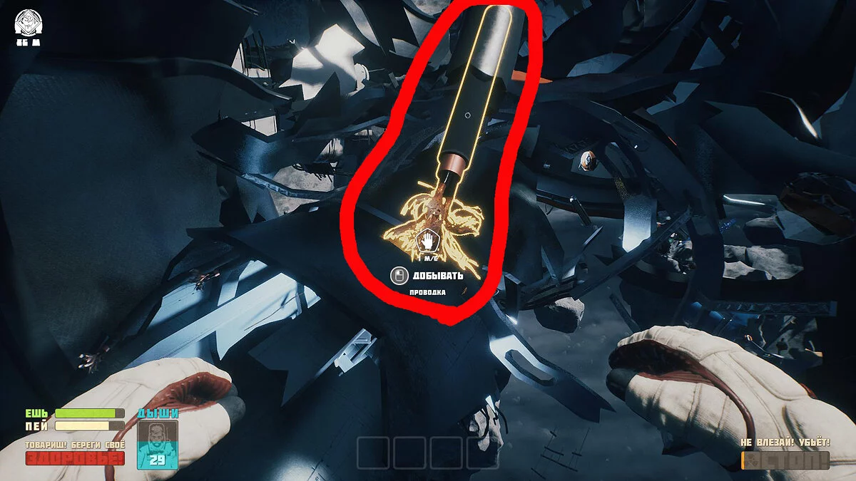 Залежи смолы можно встретить по всей карте. Это разбитые стеклянные капсулы с оранжевой субстанцией. Для добычи потребуется щуп. Можно найти в шарах с мусором.