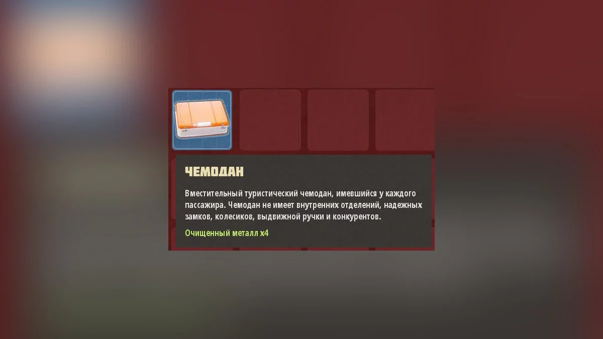 В чемодане можно хранить вещи. Рецепт чемодана можно найти в коробках на почтовом челноке. Почтовый челнок находится за главным челноком.