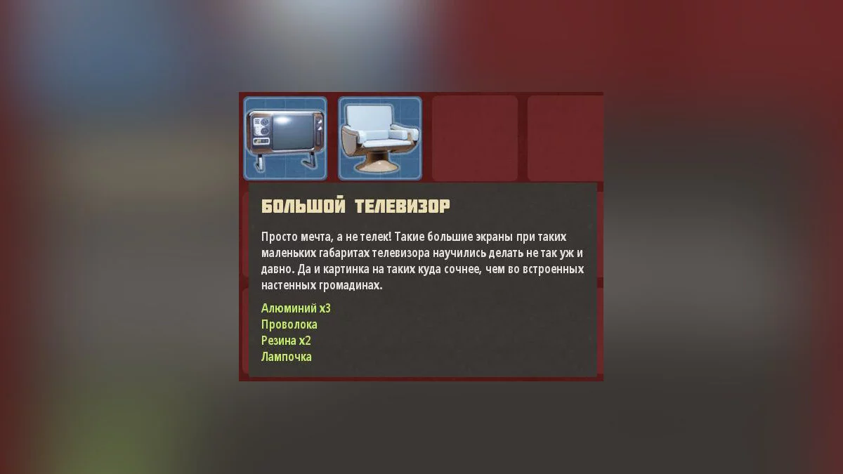 Рецепт Большого телевизора можно получить, просканировав Телевизор на островке обломков, который находится слева от главного челнока.