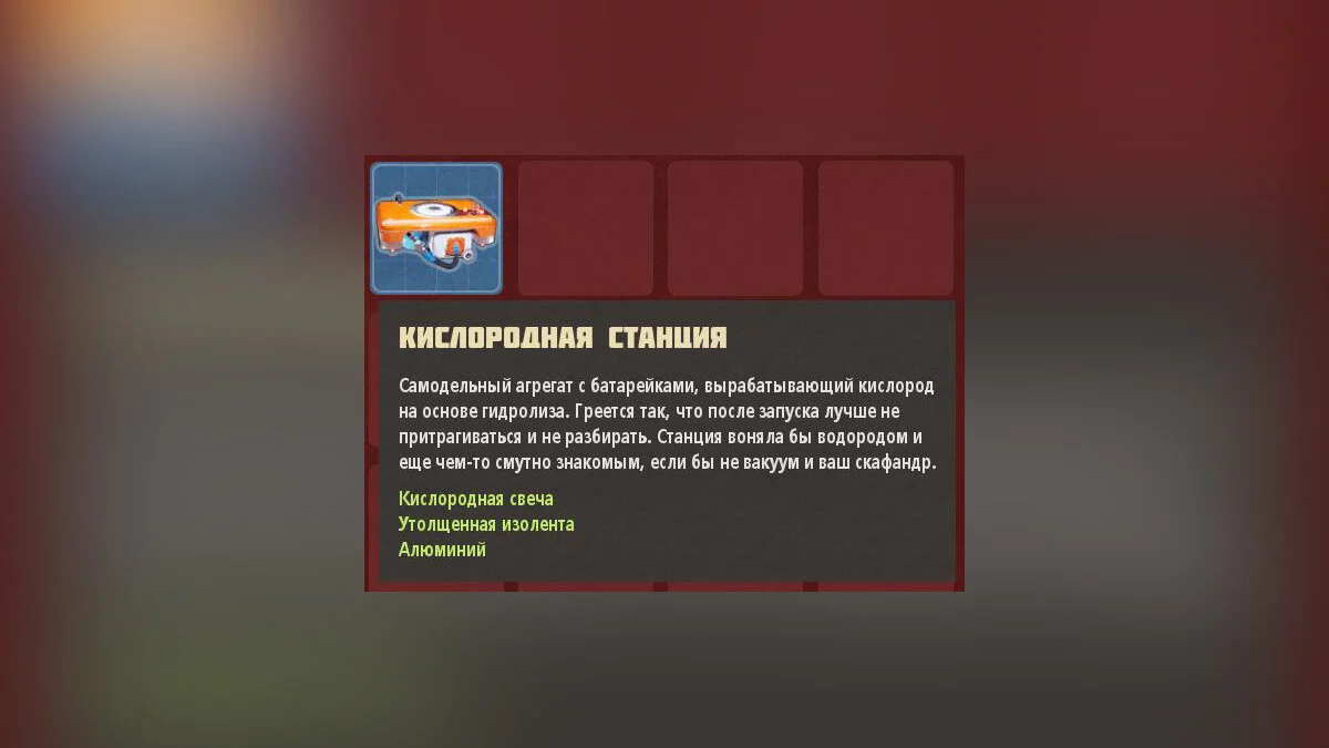 Кислородную станцию можно получить, попав на Кислородную станцию и отломав ее. Идем к станции, получаем схему Сканера. Делаем сканер и сканируем панель у входа на Кислородную станцию. Внутри открывшейся двери получаем Кислородную станцию.