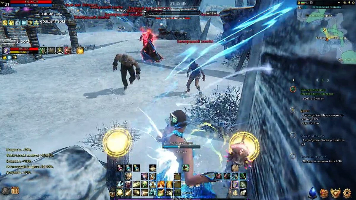 Выйдя из здания и пройдя еще немного, вы натолкнетесь на Морозную Ирен — крепкого такого мини-босса, вокруг которой всегда болтается несколько мобов. Обычные удары этого босса не так опасны, но здоровья и защиты у неё более чем достаточно и бить Ирен придется долго.