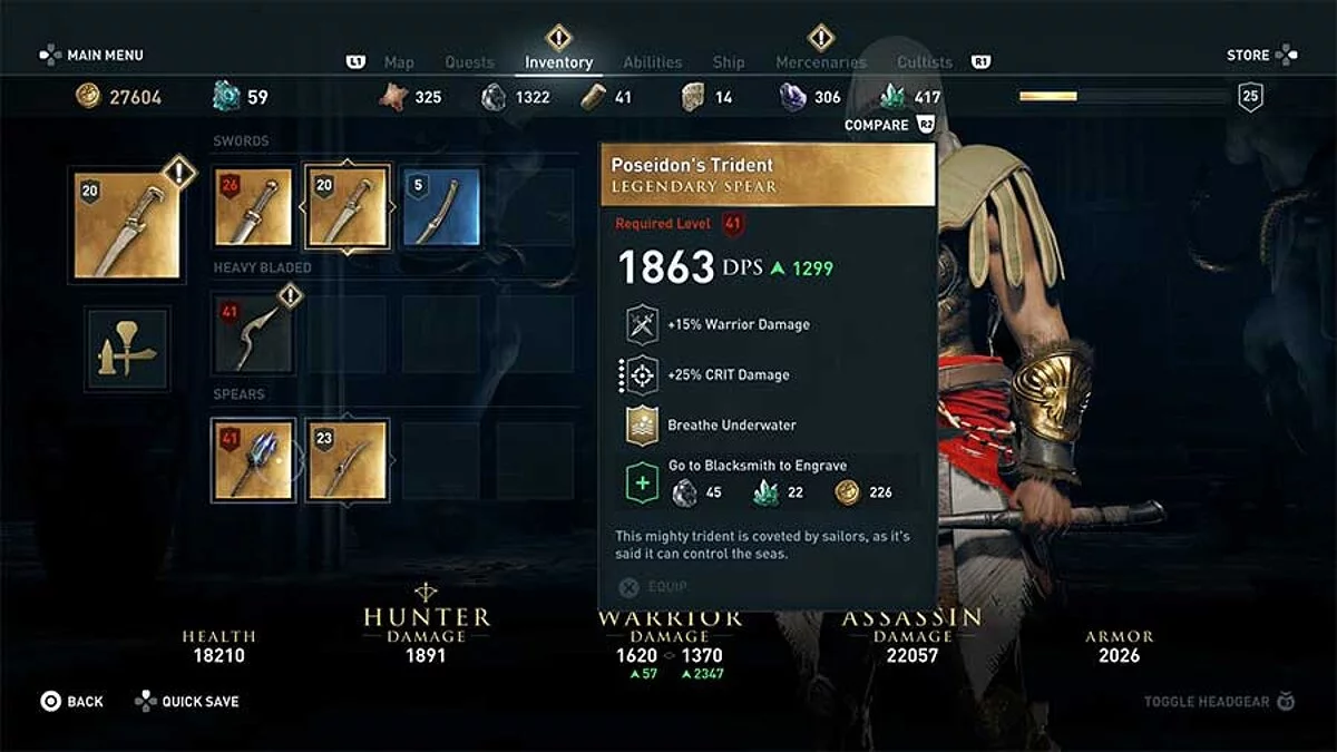 Где найти лучшее оружие в Assassin's Creed Odyssey — копьё Посейдона, лук Артемиды и другое