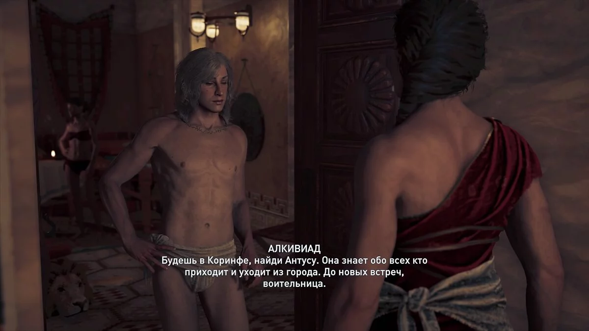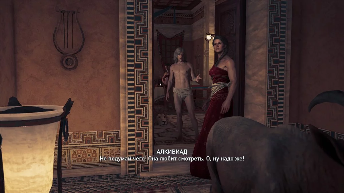 Алкивиад попросит принести оливковое масло с кухни. Самый простой роман в игре.