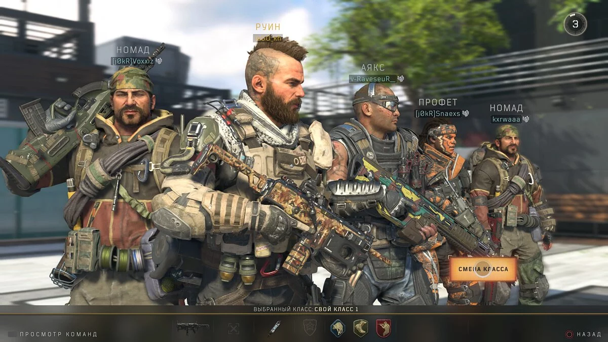 - Выбирайте персонажа в зависимости от карты. Call of Duty: Black Ops 4 — это, конечно, не Overwatch, но от выбора персонажа здесь также много зависит. У каждого героя есть свои уникальные навыки. К примеру, Номад может ставить растяжки, а поэтому он отлично подойдет для карт с большим количеством узких проходов. Профет в свою очередь может стрелять во врагов из мощной пушки «Буря», которая на маленьких картах не очень эффективна в неумелых руках. Наиболее простыми персонажами являются Торк, Номад, Аякс и Сераф;