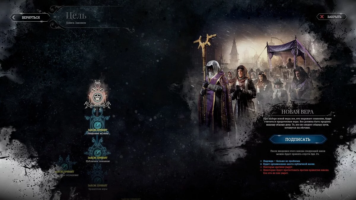 Ветви законов «Порядка» и «Веры» дадут новые функции управления населением.