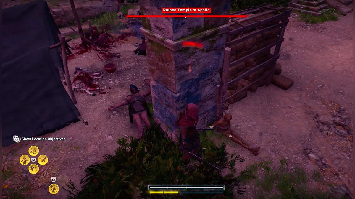 Отправляйтесь в Разрушенную Гробницу Зевса (Ruined Temple of Zeus), которая находится на южной стороне лагеря.