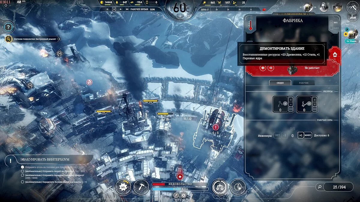 Вопрос актуален в связи с выходом гайда «падение Винтерхоума», где нужно разобрать больше половины города — подробнее можете прочитать в нашем гайде. В Frostpunk можно удалять любые улицы и цельные здания. Битые здания надо разбирать.