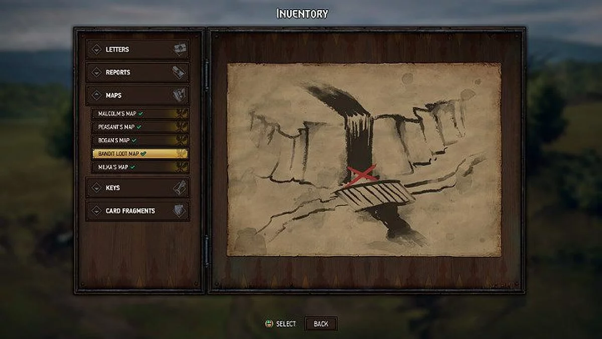 Третье сокровище можно найти по карте, полученной от бандитов. Ориентируемся на крест под водопадом. Водопад находится рядом с монастырем Мелитет (Melitele).