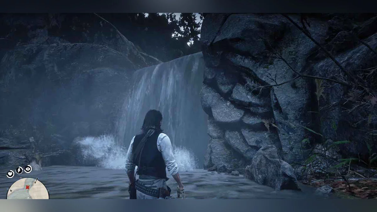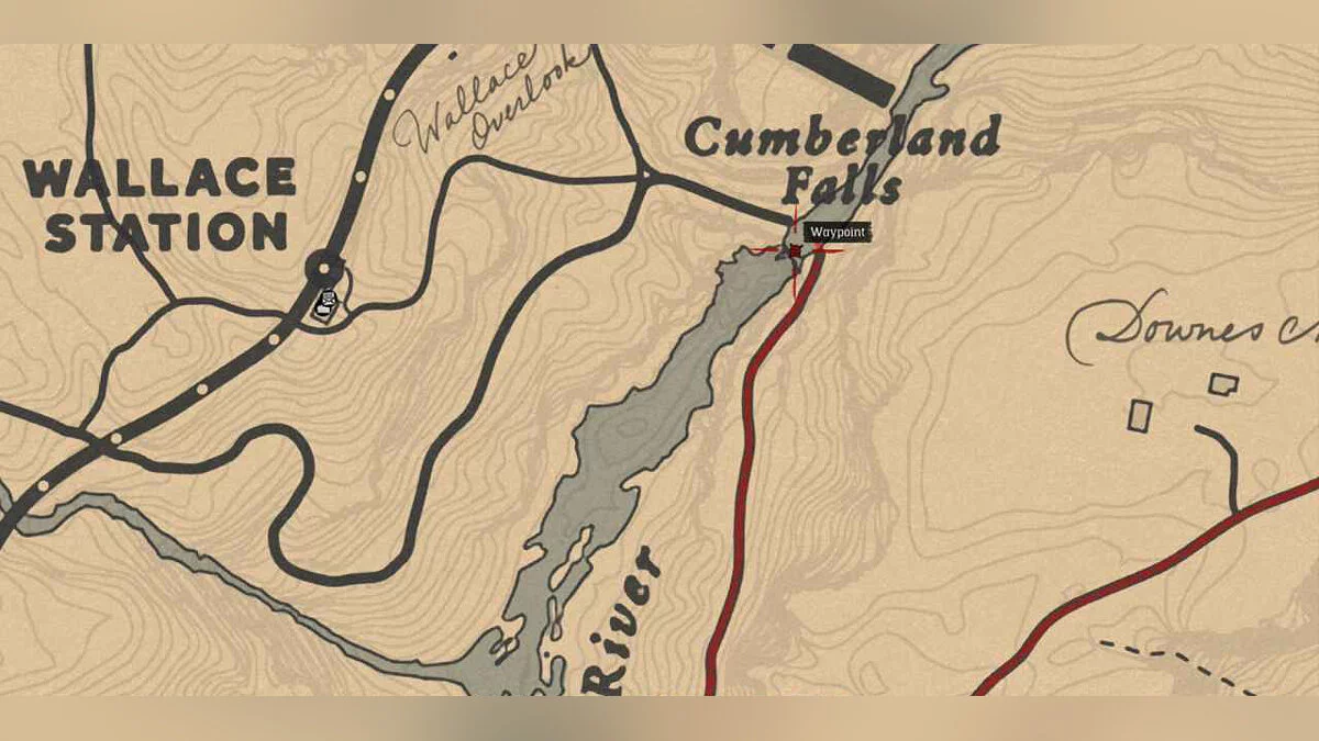 Карта сокровищ «Высокие ставки» 1 (High Stakes Treasure Map 1): За водопадом Камберленд (Waterfall at Cumberland Falls). Подходим к деревянному бревну с правой стороны водопада.