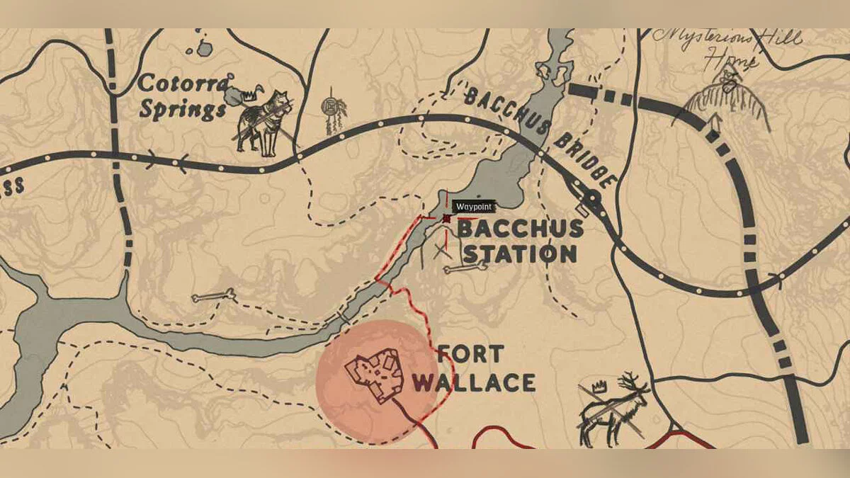 Карта сокровищ «Высокие ставки» 3 (High Stakes Treasure Map 3): На станции Вакх (Bacchus Station) спускаемся со стороны горы на нижние скалы над рекой (опускаемся с платформы на платформу). Вы можете найти сокровище, спрятанное в скале.