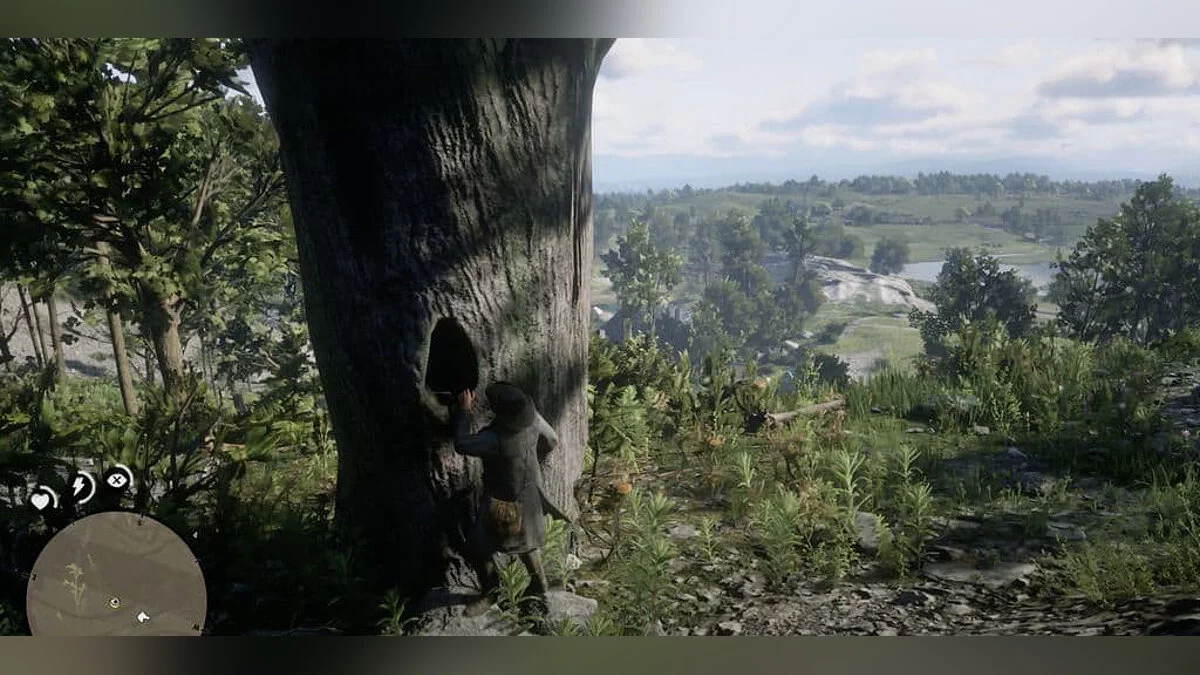 Карта сокровищ Ядовитый тропы 1 (The Poisonous Trail Map 1): На полпути к макушке холма на земле есть разбитое дерево, а еще одно мертвое дерево все еще стоит. В нем и есть карта сокровищ.