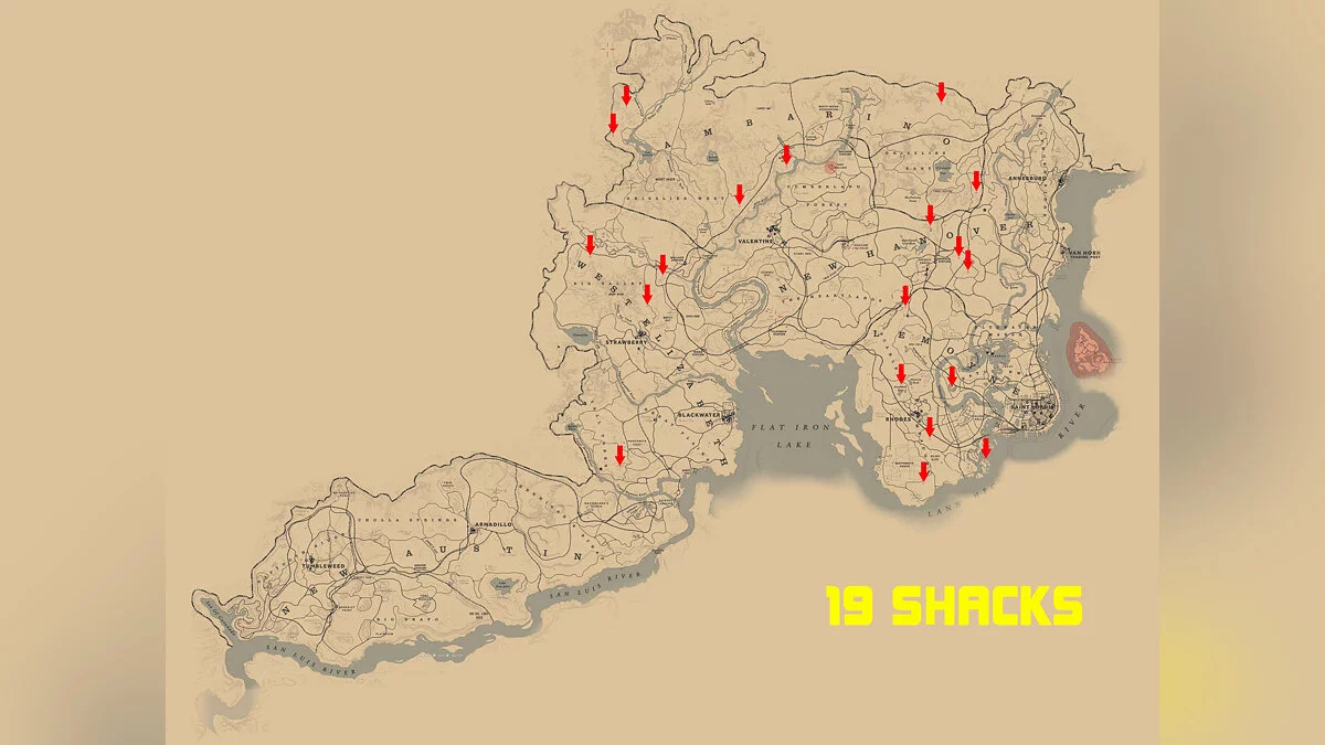 В мире Red Dead Redemption 2 можно найти 19 хижин — это небольшие постройки, в которых можно найти что-то интересное: припасы или следы преступлений. Для прохождения игры на 100% нужно найти всего 5 штук.