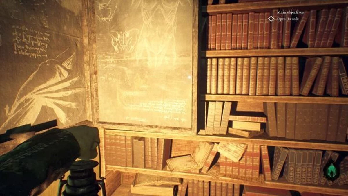 После того, как вы получите контроль над своим персонажем, подходите к книжному шкафу справа от сейфа. Между книгами вы найдете «Воспоминания Дрейка» (Drake's Memories), в них вы найдете подсказки о том, как открыть сейф. Возвращаемся в главную комнату книжного магазина и идем к книжному шкафу. Вы найдете панель, с которой сможете взаимодействовать — за ней два новых цилиндра Дрейка (2 и 3) (Drake's Cylinders). Теперь идем в маленькую комнату, расположенную рядом со входом в книжный магазин.