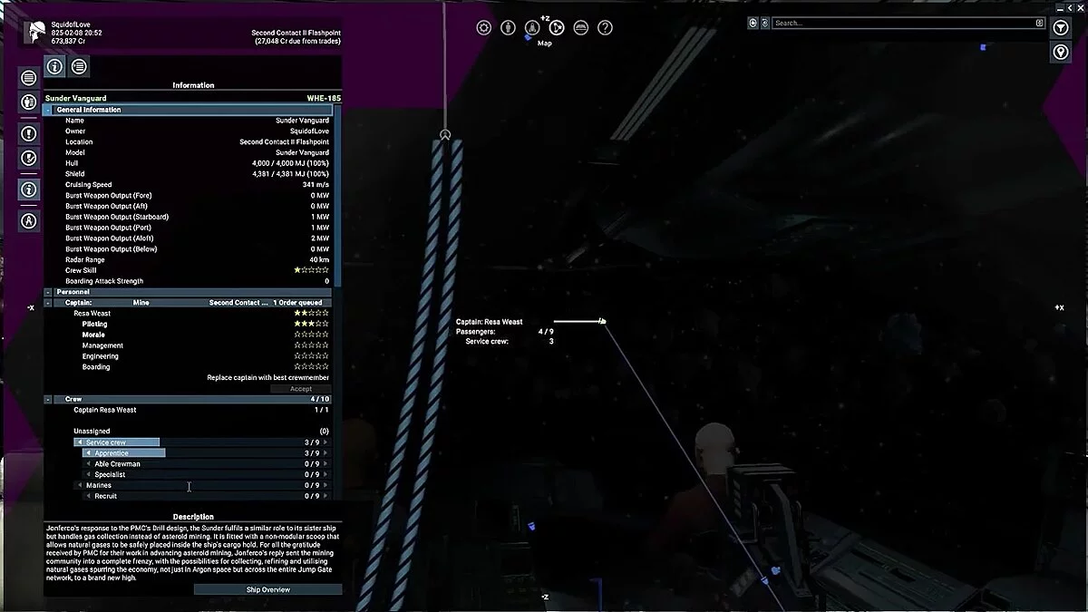 Позже стоит нанять профессионального пилота для захваченного корабля, а пехотинца вернуть в абордажную команду вашего судна.