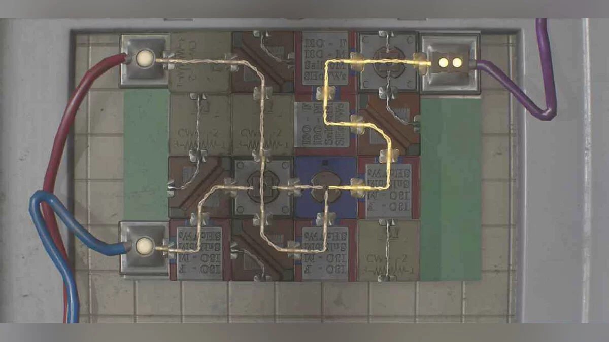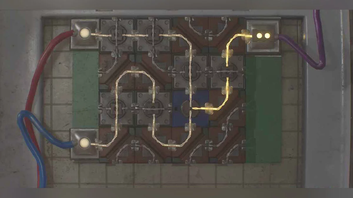После того, как вы получили штекер в форме ферзя, штекер в форме короля и штекер в форме ладьи, вы сможете решить эту головоломку. Ферзя и короля мы получили из загадки выше. Ладью мы можем получить, подняв лифт от нижних каналов к лифту рабочей комнаты (Workroom Lift). За пределами мастерской вы можете увидеть фигуру. Заберите ее и вернитесь в комнату наблюдения (Monitor Room). Слон (Bishop), Конь (Knight) и Пешка (Pawn) уже ждут в гнездах зала наблюдения.