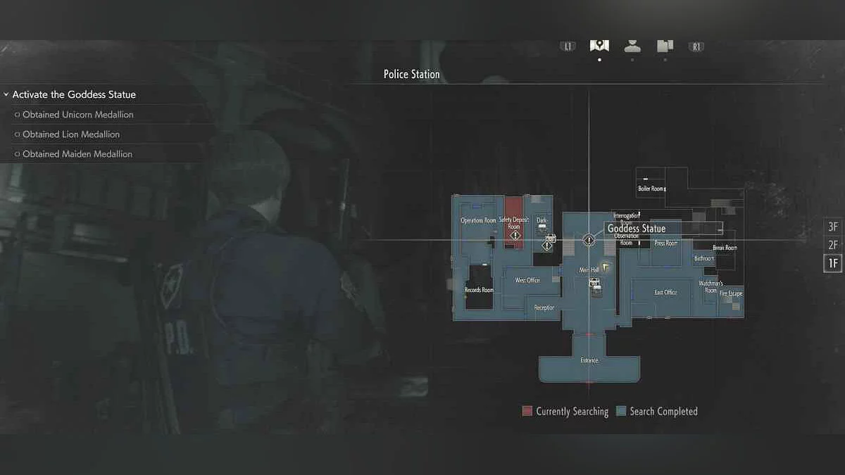 Это на самом деле это не головоломка, но если вам интересно, что делать с этими 3 медальонами, которые вы только что получили, вставьте их в Статую Богини (Goddess Statue) в холле (Main Hall). Это откроет проход в подземную часть полицейского участка.