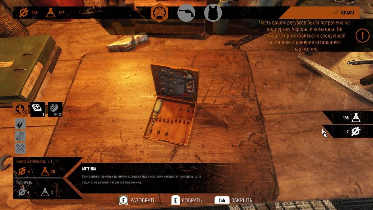 Есть два способа изготовления предметов: вы можете открыть свой рюкзак в любое время или взаимодействовать с верстаком. Если вы используете свой рюкзак, то вы можете изготовить только аптечки, фильтры для противогаза и патроны для своих пневматических пушек, одну из которых вы носите в третьем слоте для оружия. Если вы хотите изготовить боеприпасы для двух ваших обычных видов оружия, которое вы будете использовать большую часть времени, а также метательные предметы, вам понадобится верстак.