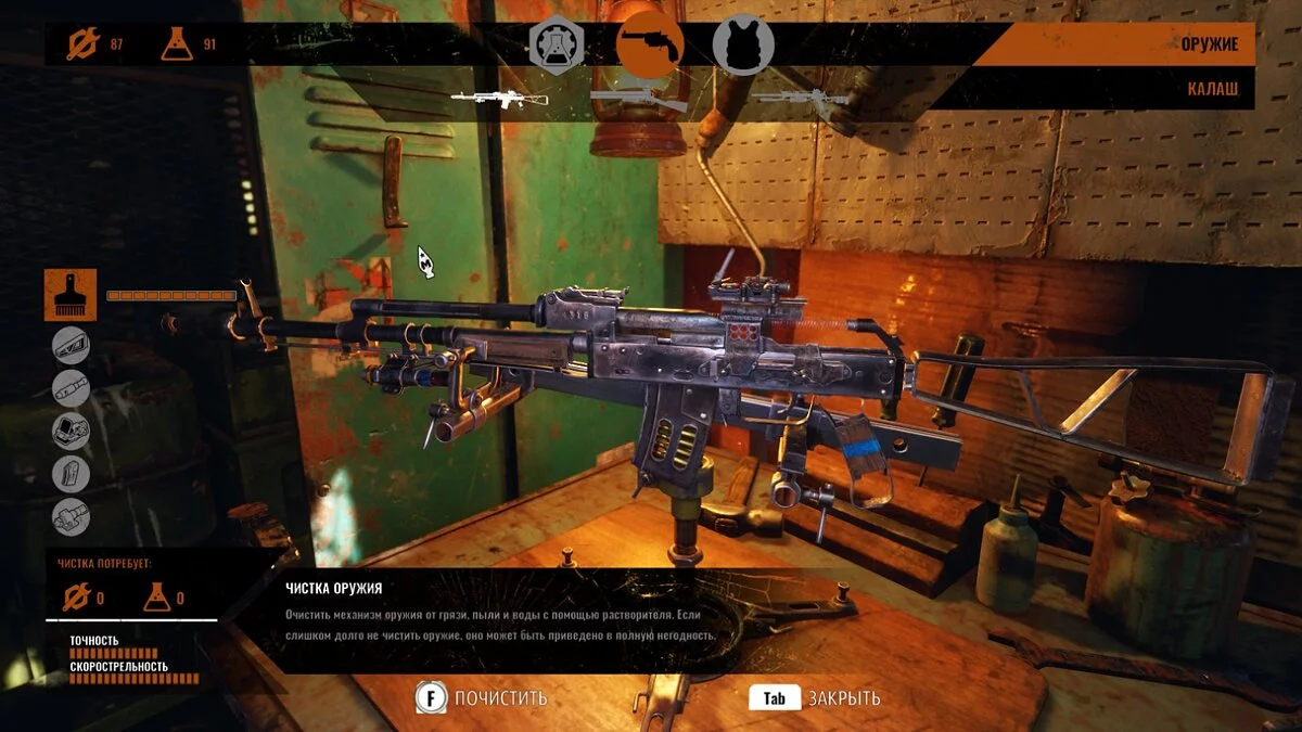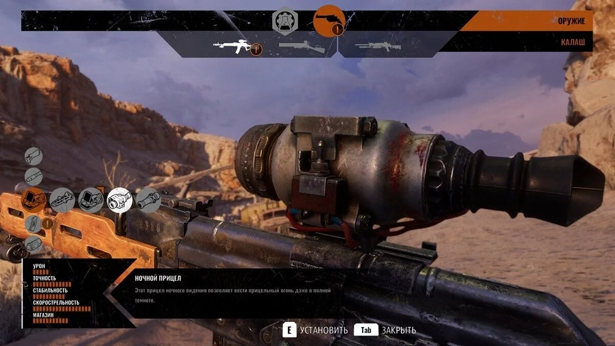 Например, показатель урона — это повреждения, наносимые одной пулей, поэтому, например, у «Калаша» он довольно низкий, как видно на скриншоте выше. А вот дробовик, стреляющий зарядом дроби, наносит большой урон одним выстрелом. Но после этого выстрела дробовик нужно перезарядить, а автомат может вести автоматический огонь, нанося гораздо больший урон в секунду.