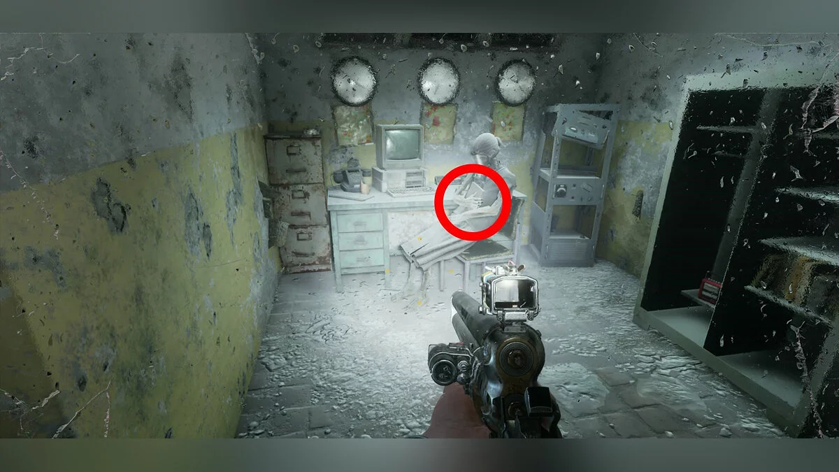 Теперь вы будете в комнате со шкафами для хранения документов на левой стороне. Пройдите в дверь в дальнем левом углу. Вы окажетесь в крошечном офисе с трупом женщины, сидящей за столом и сжимающей что-то. Подойдите к трупу, чтобы забрать фото. После короткой заставки у вас будет фотография, которую попросила Гюль.