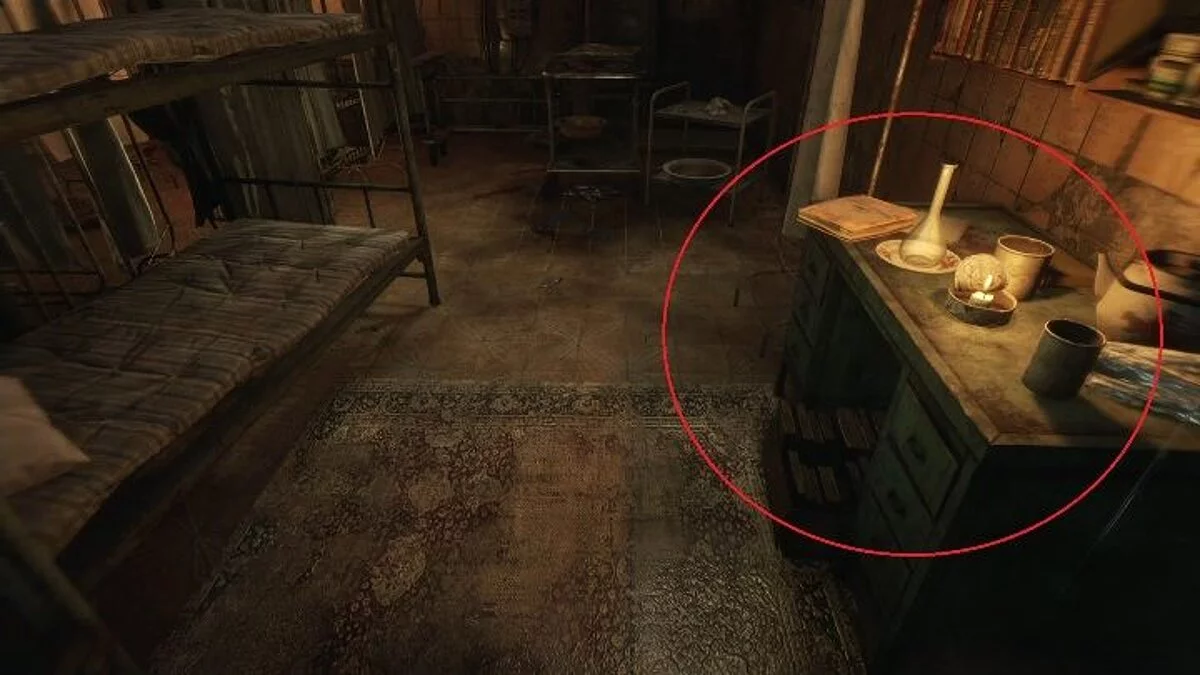 Расположение: первая открытка находится в метро. После пробуждения вы можете исследовать близлежащие комнаты. Рядом со входом в комнату, где находятся ваши друзья, есть зеленый шкафчик. Первая открытка прикреплена к этому шкафчику.
