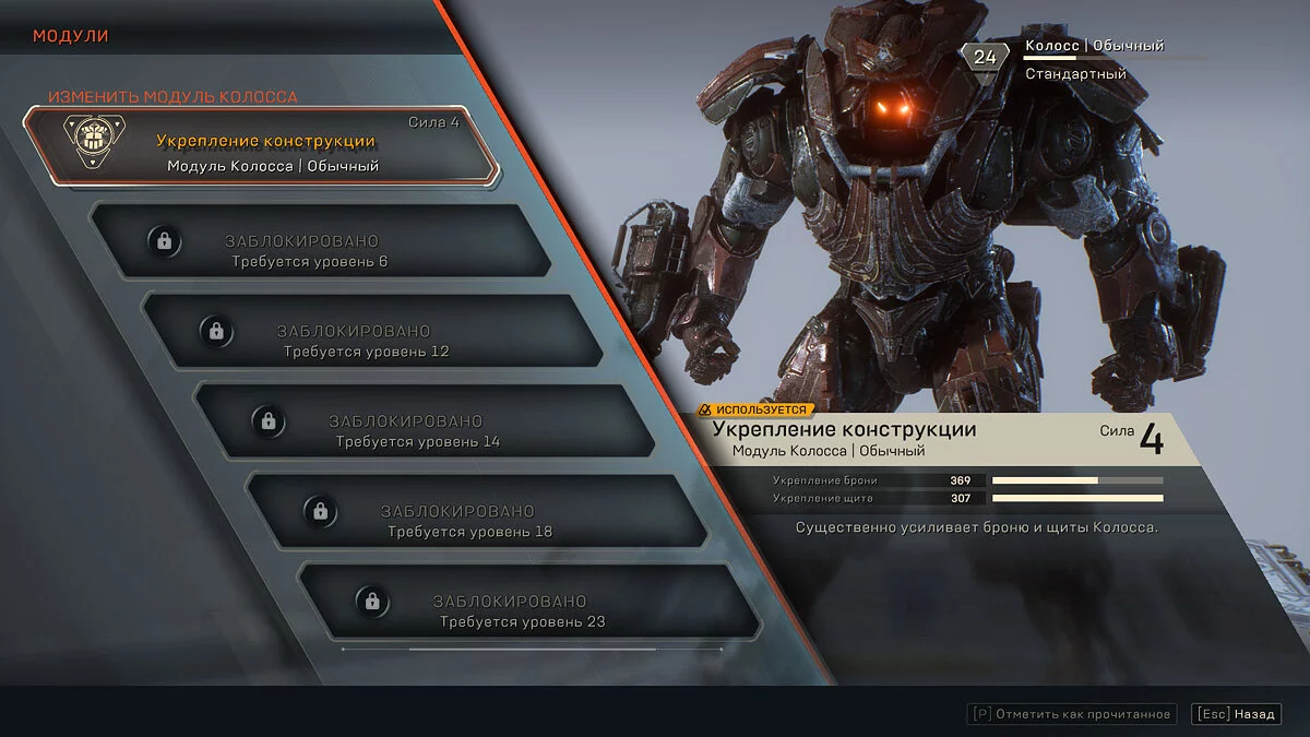 На каждый джавелин можно поместить до 6 модулей. Тем не менее, все 6 слотов доступны не сразу — их нужно открывать по мере прогресса.