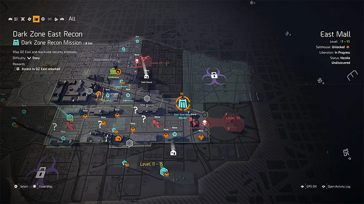 Они заблокированы, когда вы начнете прохождение. Но доступ во все три зоны откроется как только ваш персонаж достигнет 10 уровня. Также требуется пройти ряд однопользовательских миссий, прежде чем он получит доступ в любую из областей Темной зоны.
