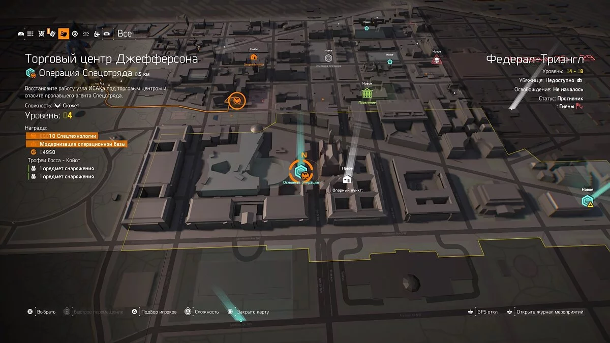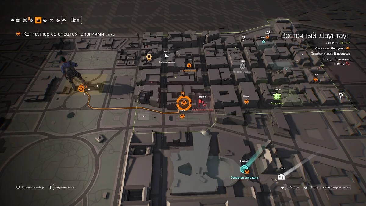 К тому же по ходу выполнения можно сражаться с противниками и повысить уровень персонажа, получая тем самым дополнительные очки спетехнологий. Но перед тем, как перейти к выполнению очередного задания, следует узнать его сложность, чтобы не столкнуться с врагами, чей уровень слишком высок для агента. Для этого нужно открыть карту района и навести курсор на иконку.