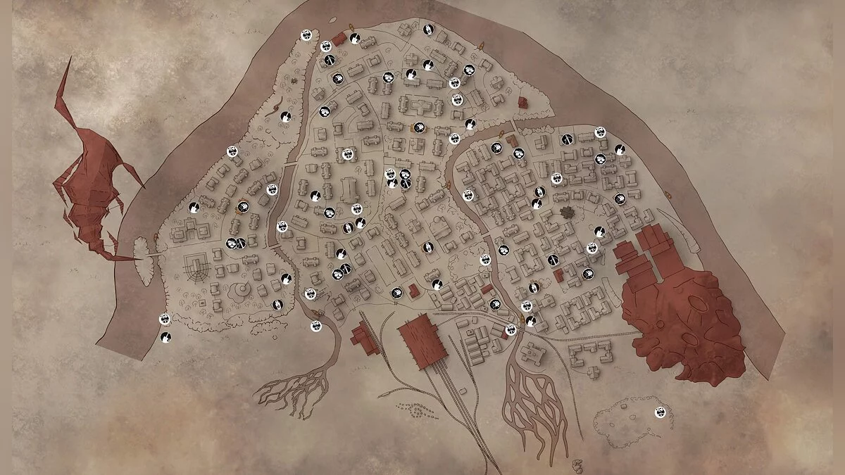 В экшене «Мор» (Pathologic 2) игроку предстоит исследовать довольно большой и мрачный город. Эта карта поможет найти все важные локации игры.