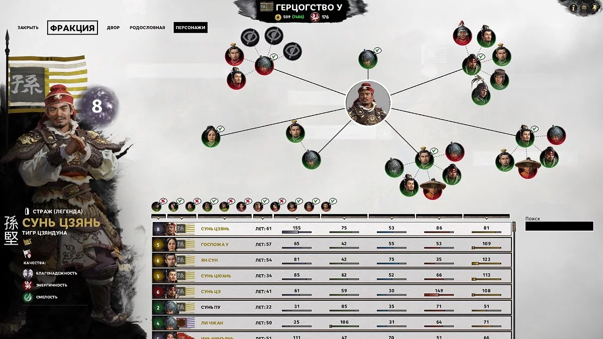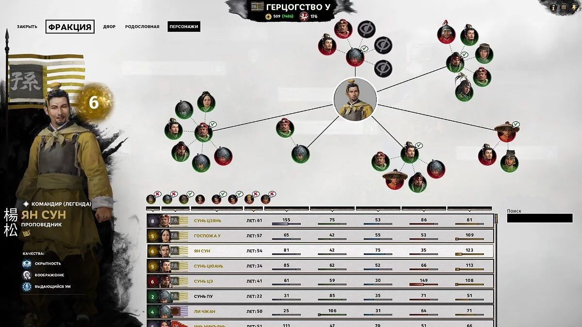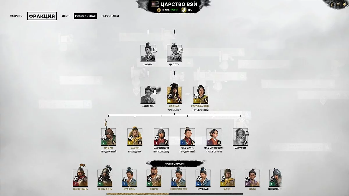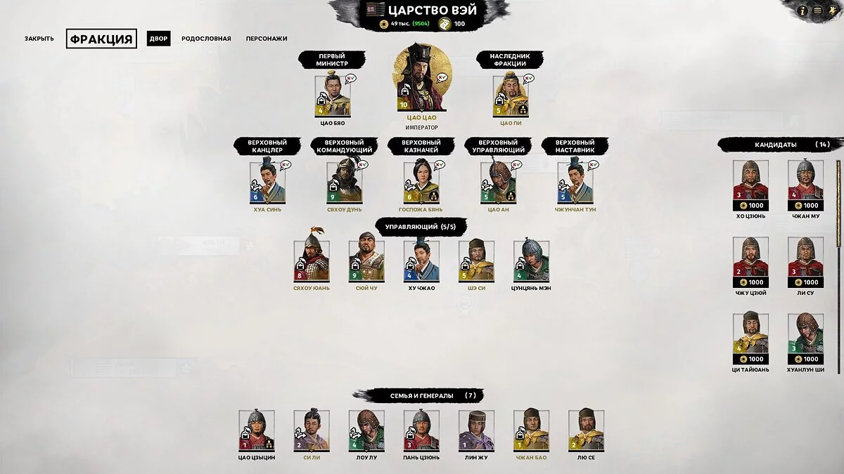 Только те персонажи, что входят в иерархическое древо (на скриншоте) формируют государев двор и совет фракции (о нем мы писали отдельный гайд).
