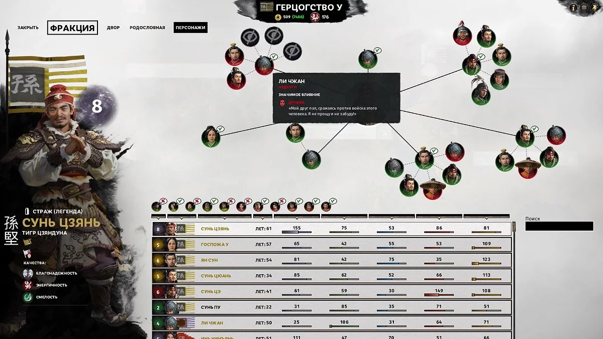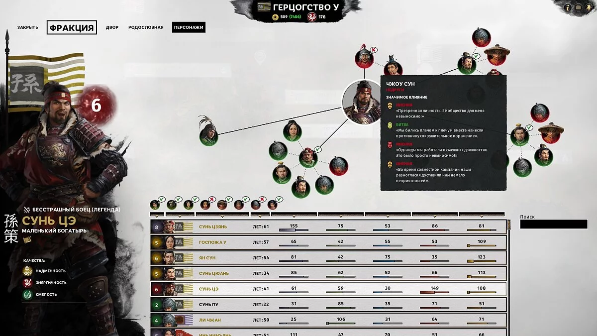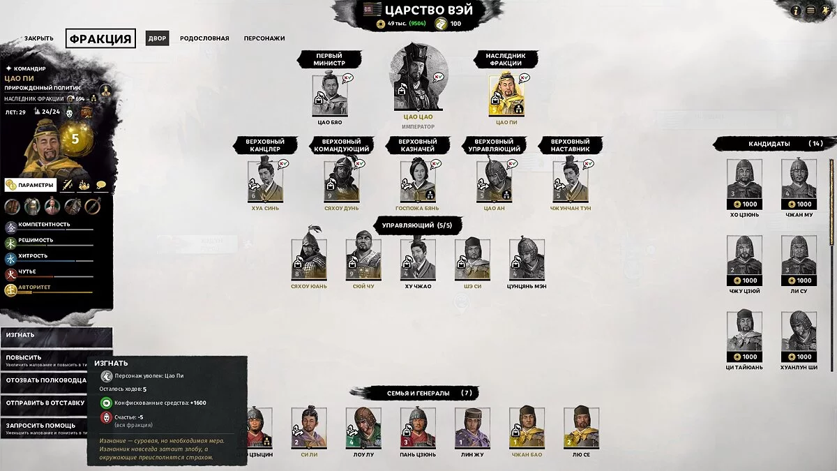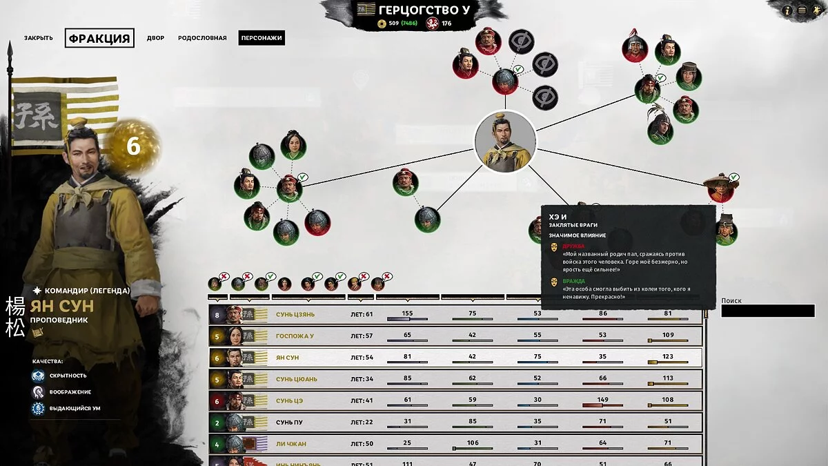 Только те персонажи, что входят в иерархическое древо (на скриншоте) формируют государев двор и совет фракции (о нем мы писали отдельный гайд).