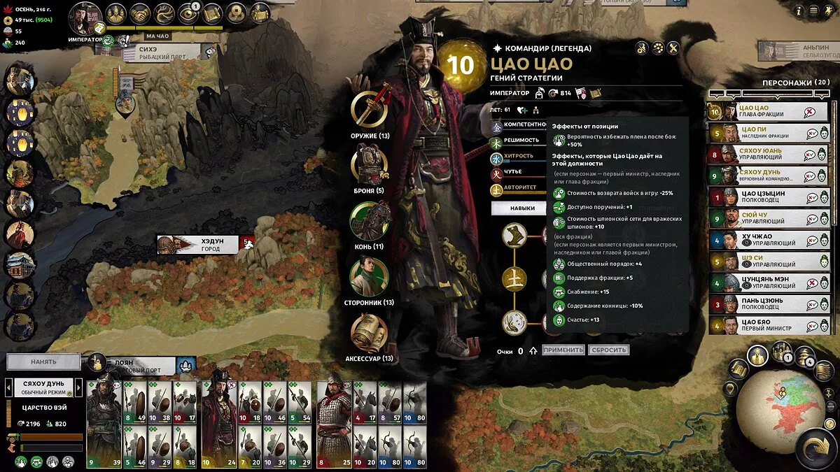 В Three Kingdoms правитель представлен не абстрактной личностью на фоне величия игрока, а самостоятельным юнитом, способным сражаться в бою, улучшать свои характеристики и экипировку.