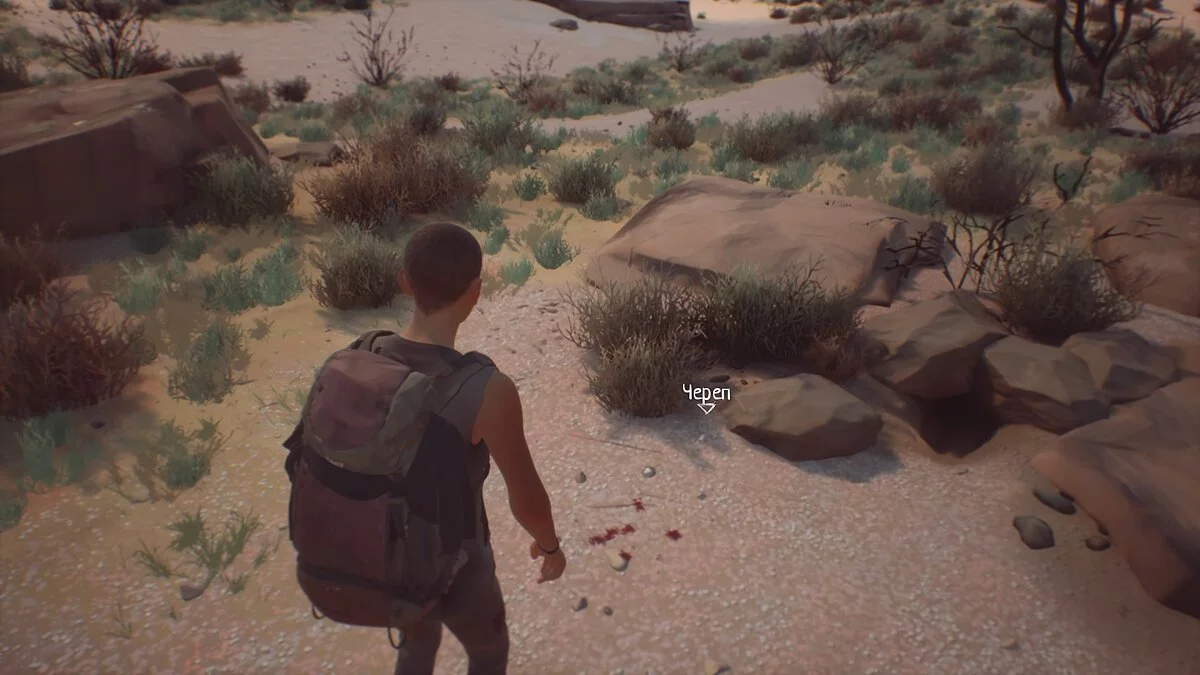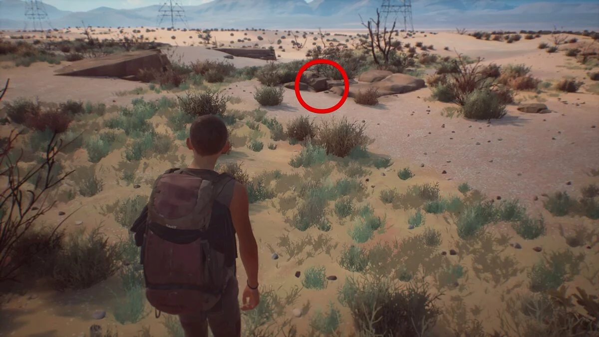 Пройдя долгий путь по пустыне, Шон решит передохнуть в тени рекламного щита. После этого продолжайте движение пока не заметите койота, спешащего в свою нору. Следуйте за ним и поднимите череп с земли.