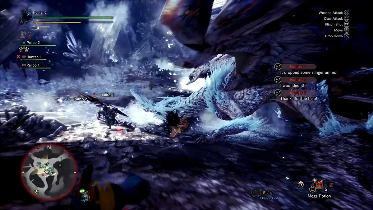 После того, как вы успешно повалите её, будьте готовы атаковать похожий на копьё хвост, чтобы отрезать его и свести на нет его эффективность. Когда она начнёт готовиться к своей ледяной лучевой атаке, убедитесь, что вы находитесь за её передними ногами, так как в таком случае вы сможете держаться подальше от луча и безопасно наносить большую часть урона без получения повреждений.