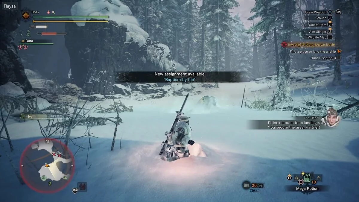 Сражаться с ним вы сможете только в стартовых зонах в Морозном просторе (Hoarfrost Reach), поэтому монстр не сможет уйти далеко. В каждом регионе есть места, с которых можно спрыгнуть, или склоны, которыми можно воспользоваться. Для орудий, наносящих весомый урон пока вы сидите на монстре или находитесь в воздухе, вроде молота, эти места идеальны. Все виды оружия имеют преимущества при осуществлении атаки в скольжении, поэтому используйте их, когда можете снести определённое количество здоровья своему врагу.