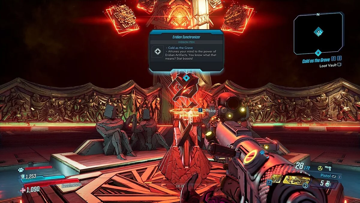 Тогда у вас появится доступ ко второму хранилищу в игре и к синхронизатору Эридан (Eridian Synchronizer) — именно этот предмет и позволит вам использовать артефакты из вашего инвентаря.