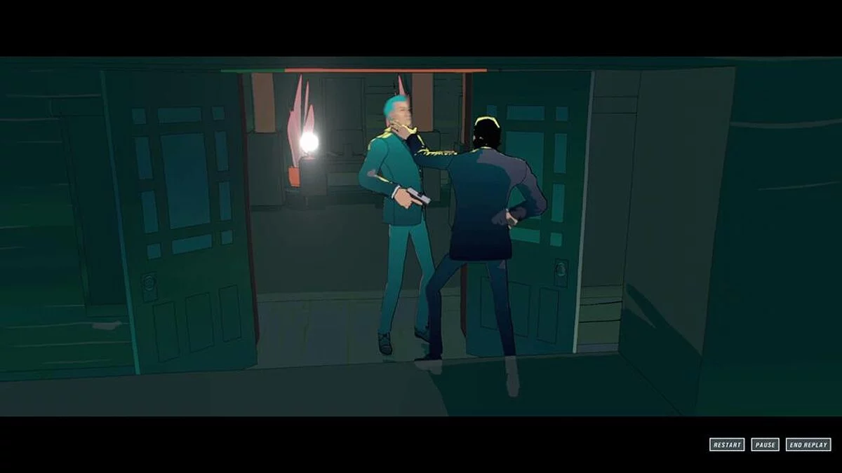 Чаще меняем свою позицию, чтобы быстрее убивать охранников. Так добираемся до офиса Эдгара. Как и большинство боев с боссами в John Wick Hex, лучше всего выманить его, не забывая про противников, которые появятся в коридоре позади вас. Прервите его линию видимости, спрятавшись рядом со входом в офис, подождите, пока он подберется поближе, и внезапно атакуйте его. Несколько ударов и вы вычеркните его имя из списка целей Джона Уика.