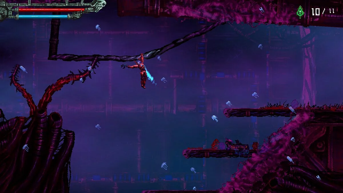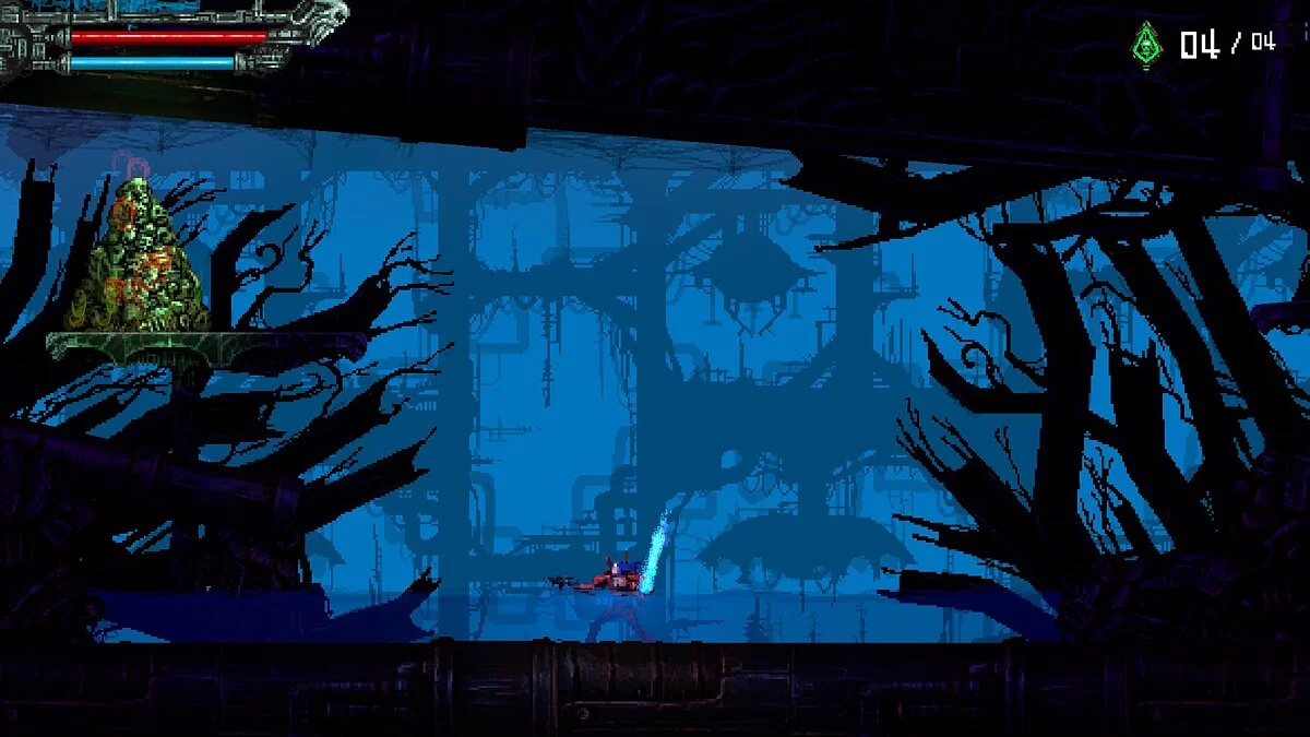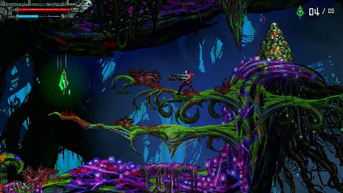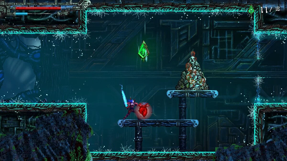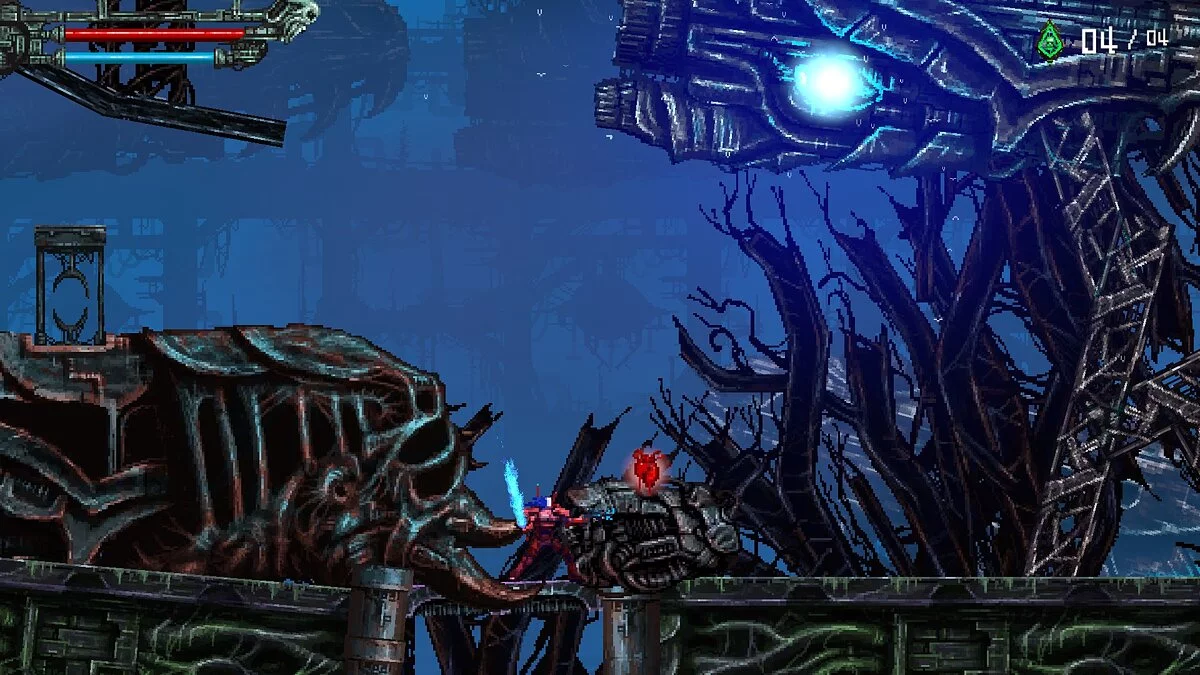 Спрыгните через платформу перед кораблем (powerless ship). Куча является приманкой и содержит большое сердце (big heart). Как только вы подпрыгиваете к нему, появляется ракетный монстр, который сбрасывает Кровавый Металл.