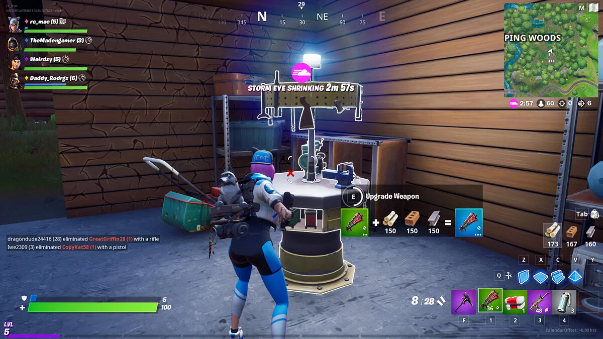 - У кирки в PC-версии Fortnite появилась собственная горячая клавиша — F — так что теперь не придется её назначать каждый раз.