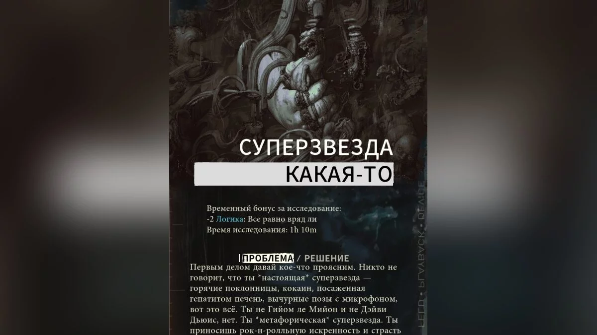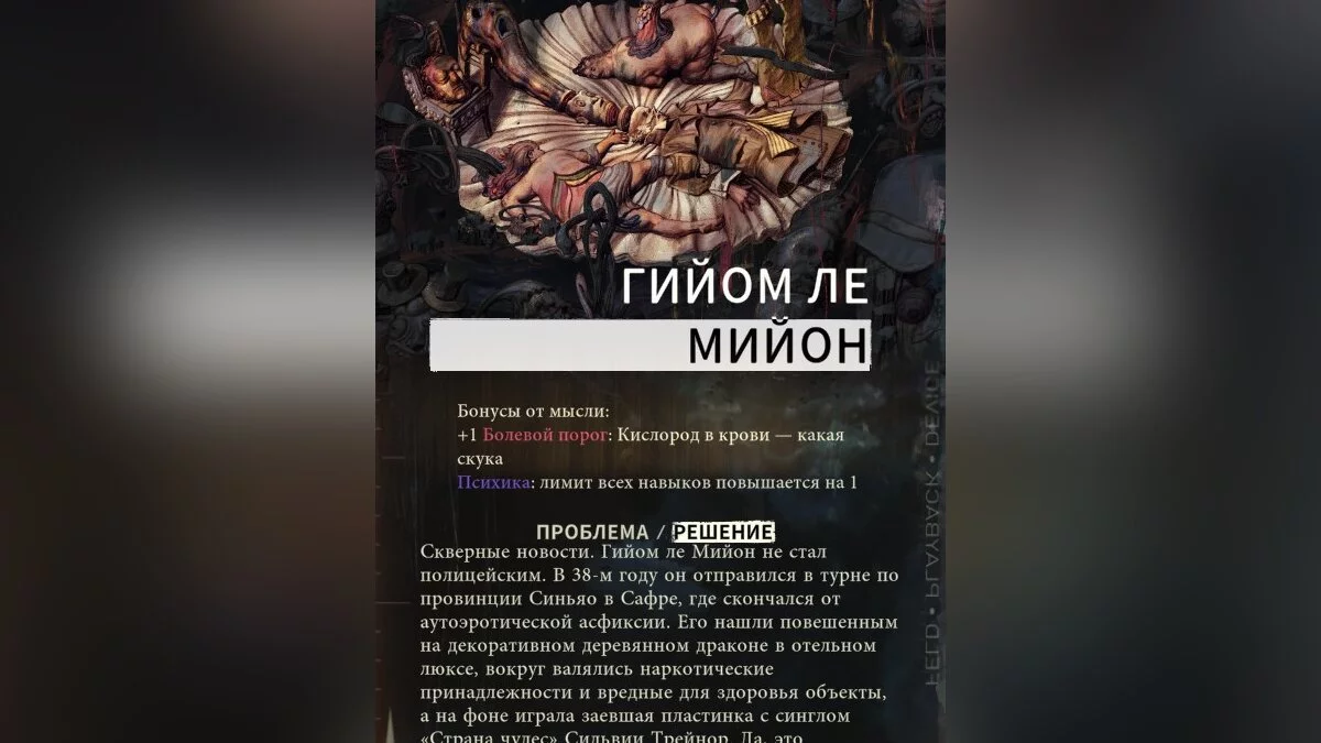 Как получить: необходимо называть героя детективом Косто, провалить проверку Концептуализации и отказаться от настоящего имени.