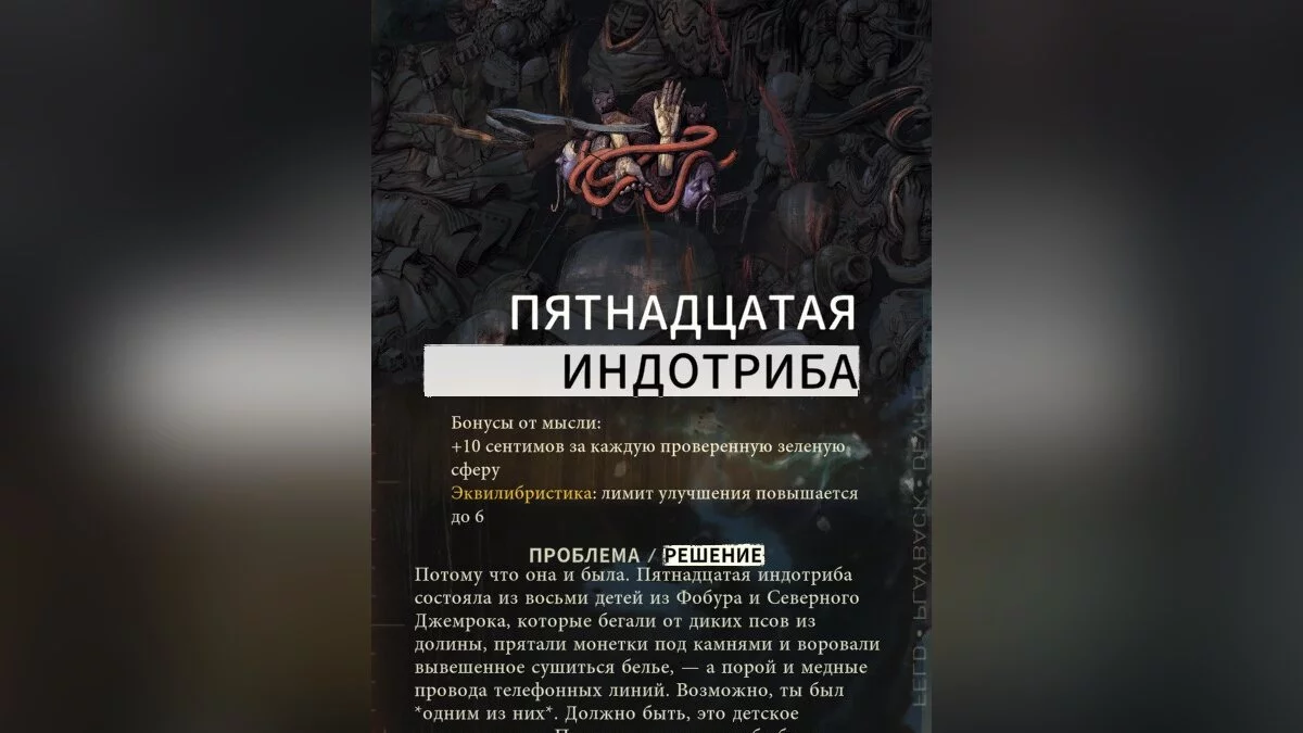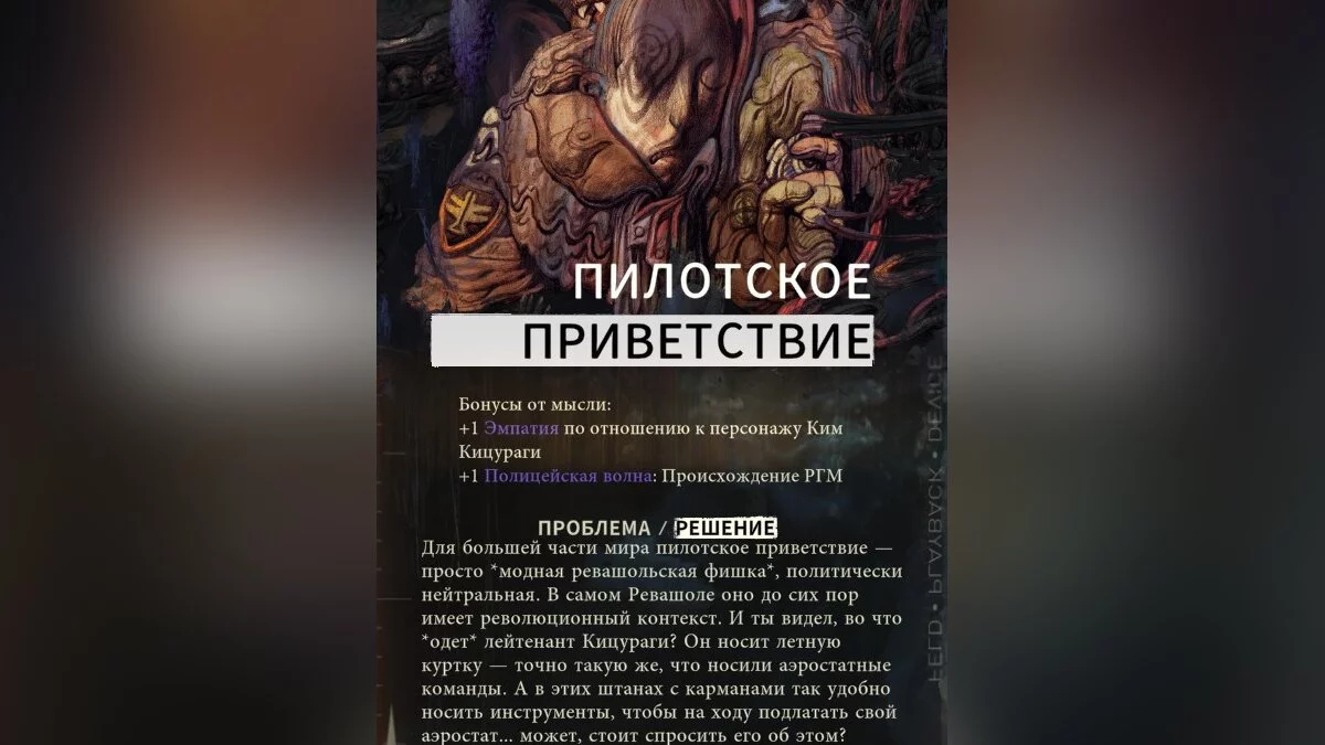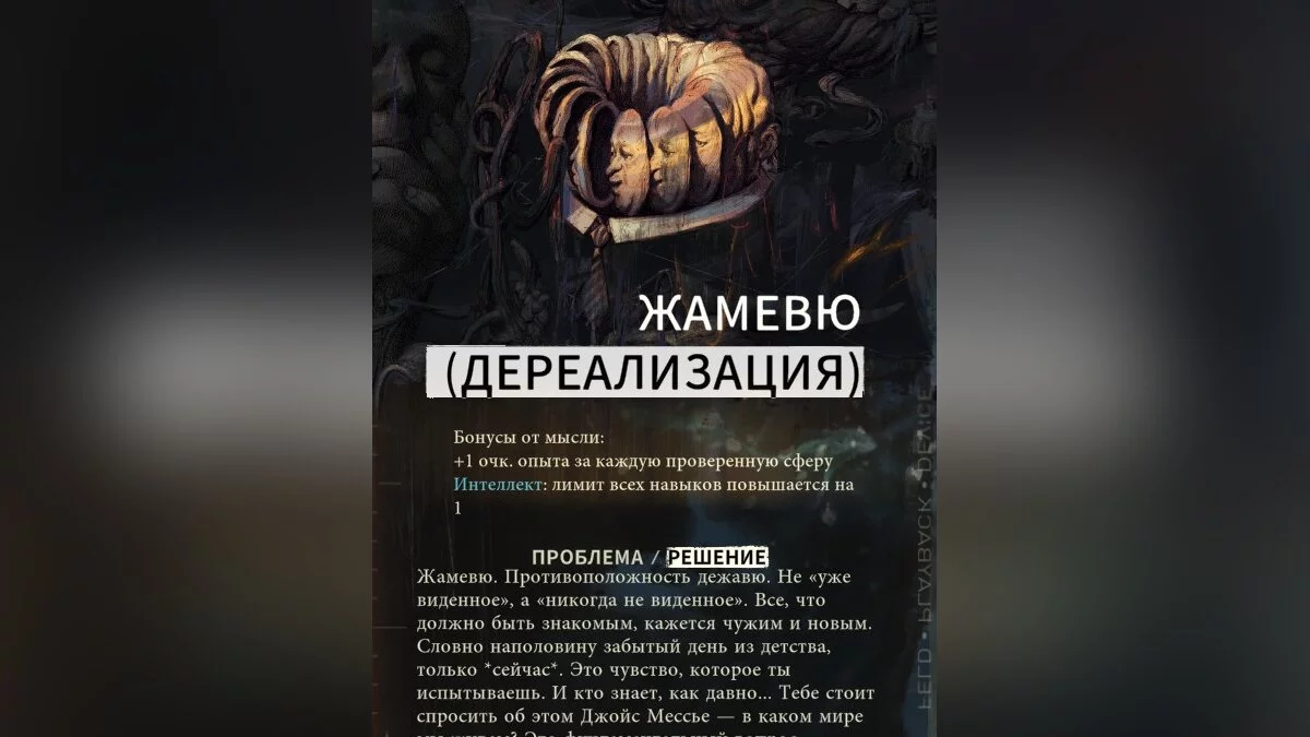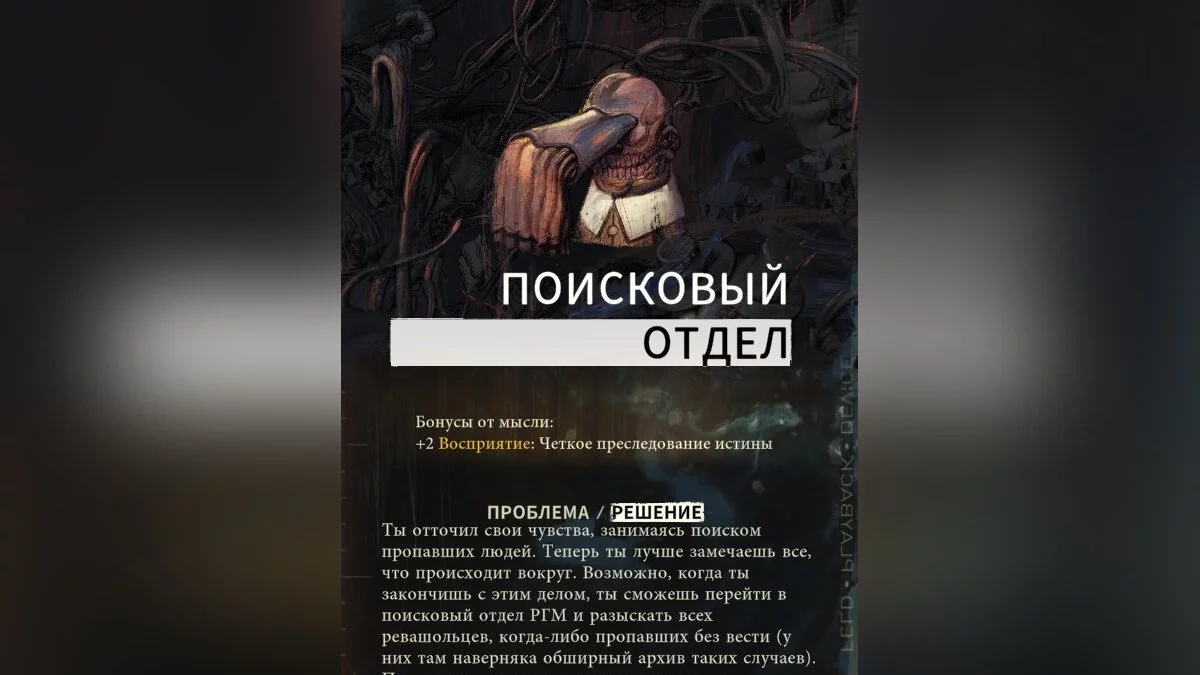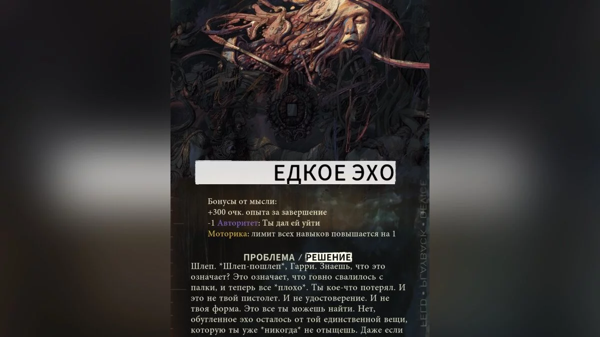 Некоторые из этих мыслей влияют на вашего персонажа, изменяя ваши навыки. Другие меняют способ взаимодействия с миром, дают очки опыта, исцеление или деньги за определенные действия. Важно отметить — ни одна из ваших мыслей не меняет параметры ваших диалогов.